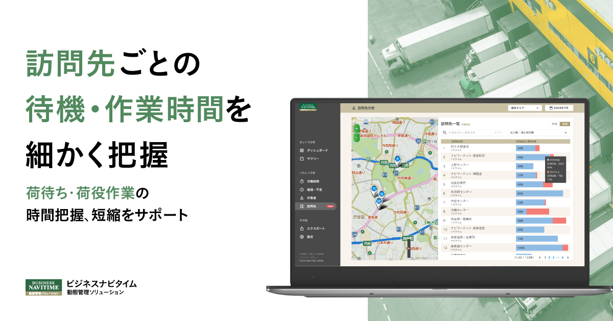 『ビジネスナビタイム 動態管理ソリューション』、労働状況可視化ツールに「訪問先分析」機能を追加