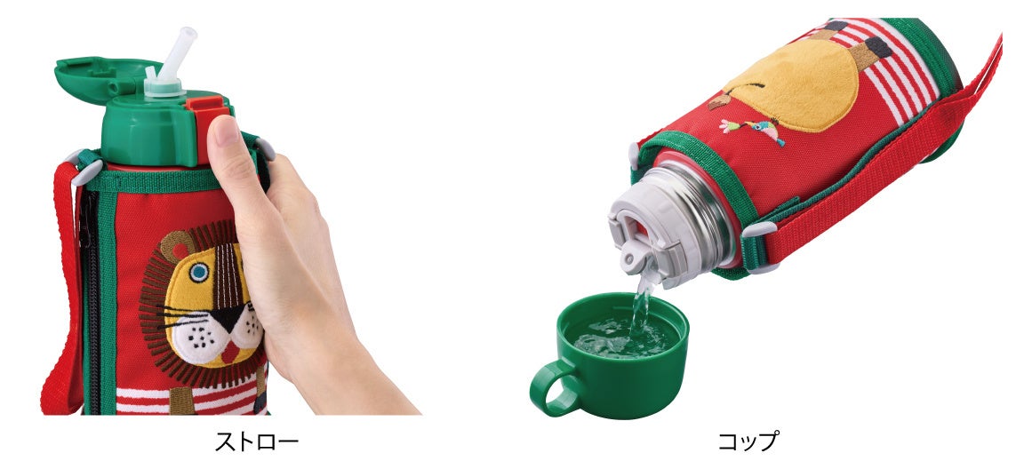 機能面では、保温・保冷が可能※2で、シーンやお子さまの成長に合わせてコップとストロー2つの飲み方が選べる「2WAYタイプ」、タフな使用に耐えて丸洗いOKの「頑丈ポーチ」、ボトルの内面に汚れがつきにくい「スーパークリーン加工」等、使いやすさにもこだわっています。