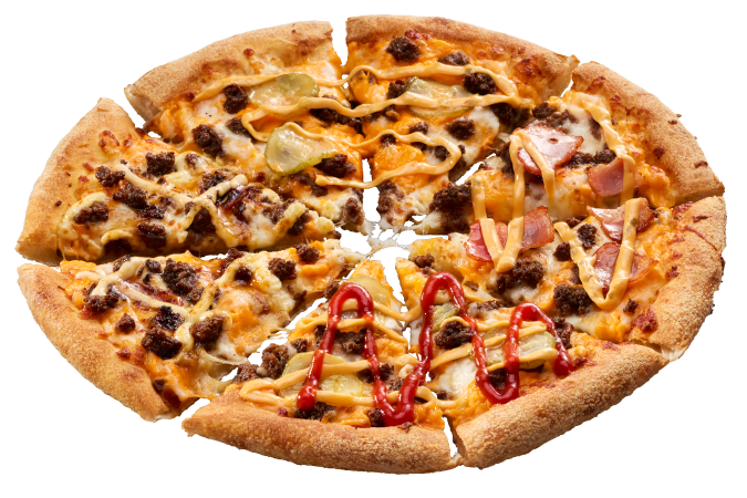 「チーズバーガーピザ」なら、本格的なバーガーの味わいを簡単にシェアして、思う存分堪能できる!