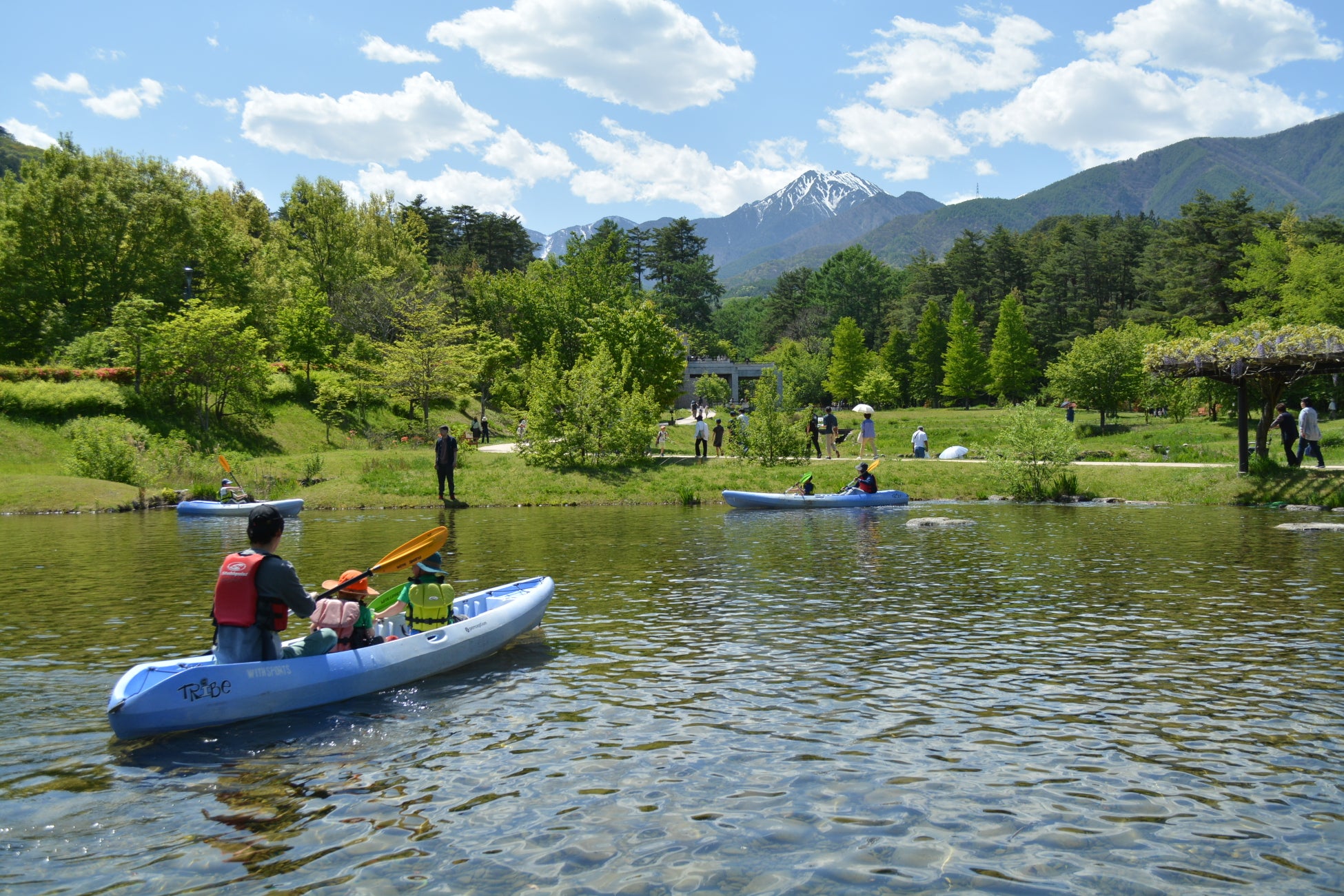 GW中はチューリップ、ナノハナ共に見ごろのままお楽しみいただけます。また、GW後半の5月3日~6日には様々なイベントを開催しています。5月3日~6日はあづみのカヌー体験、5月3日、5日、6日はふれあい動物園をお楽しみいただけます。