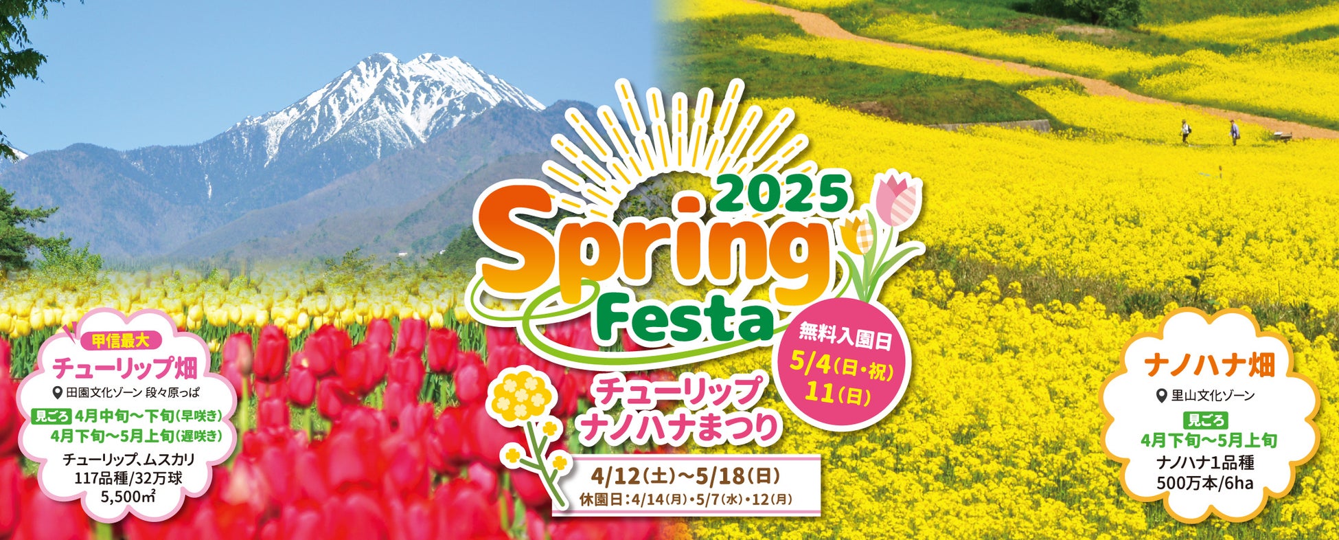 「SPRING FESTA 2025~チューリップ・ナノハナまつり~ 」 【国営アルプスあづみの公園 堀金・穂高地区】