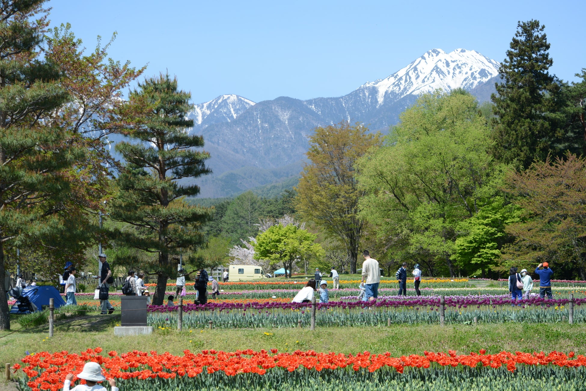 長野県安曇野市の国営アルプスあづみの公園 堀金・穂高地区で「SPRING FESTA 2025~チューリップ・ナノハナまつり~ 」を5月18日まで開催中です。甲信最大のチューリップ畑と残雪の北アルプスを共にお楽しみいただけます。