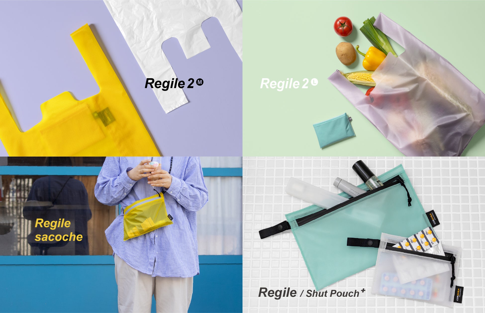 ■Regileシリーズ (撥水・防汚機能付きの、軽くて薄いポーチやエコバッグ)