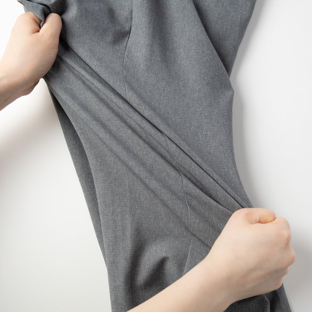 また、編み方にこだわることで、夏用スーツ特有の透け感を解消し、天然素材のような肌触りに。従来の自社セットアップより、さらにストレッチ性に優れているため腕や肩回りの可動域を広げてくれます。また従来品同様、速乾と撥水に優れているので汗によるべたつきを解消し、突然の雨にもしっかり対応いたします。