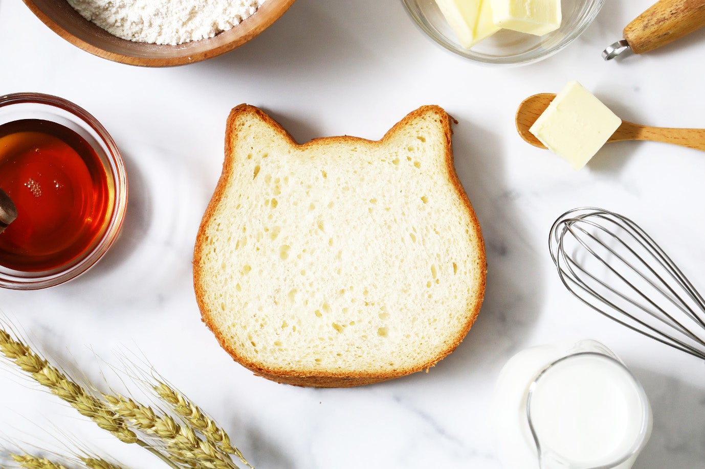 芳醇な香りが特長的な「フランス産の発酵バター」、栄養価が高く濃厚な風味が特徴的な八ヶ岳野辺山高原の「ジャージー牛乳」、はちみつの豊かな味わいや香りをお楽しみいただける「クリアハニー」を使用することで、「ねこねこ食パン プレミアム」はねこねこ食パン史上最高峰のフレーバーに仕上げております。