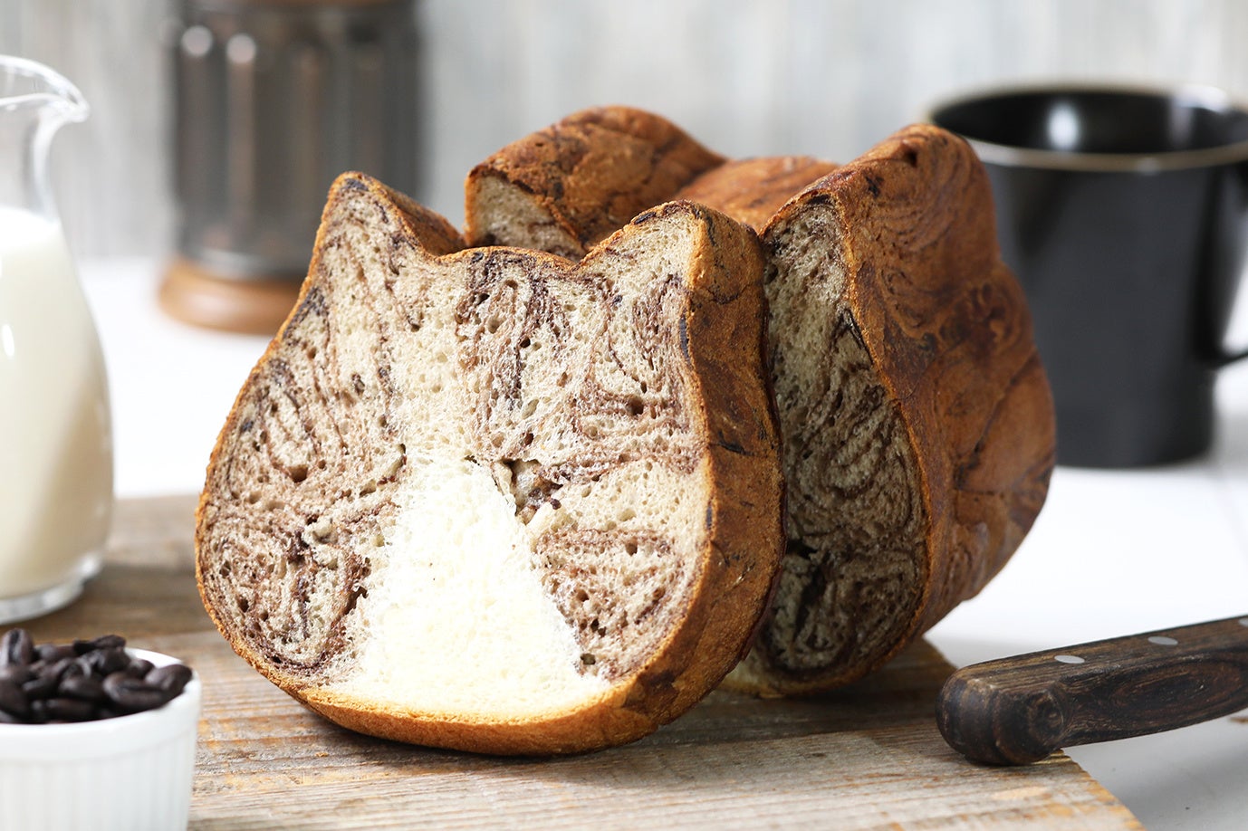 コーヒー風味の生地を使用し、トーストするとコーヒーの香りが広がるちょっぴり大人なねこねこ食パンです。