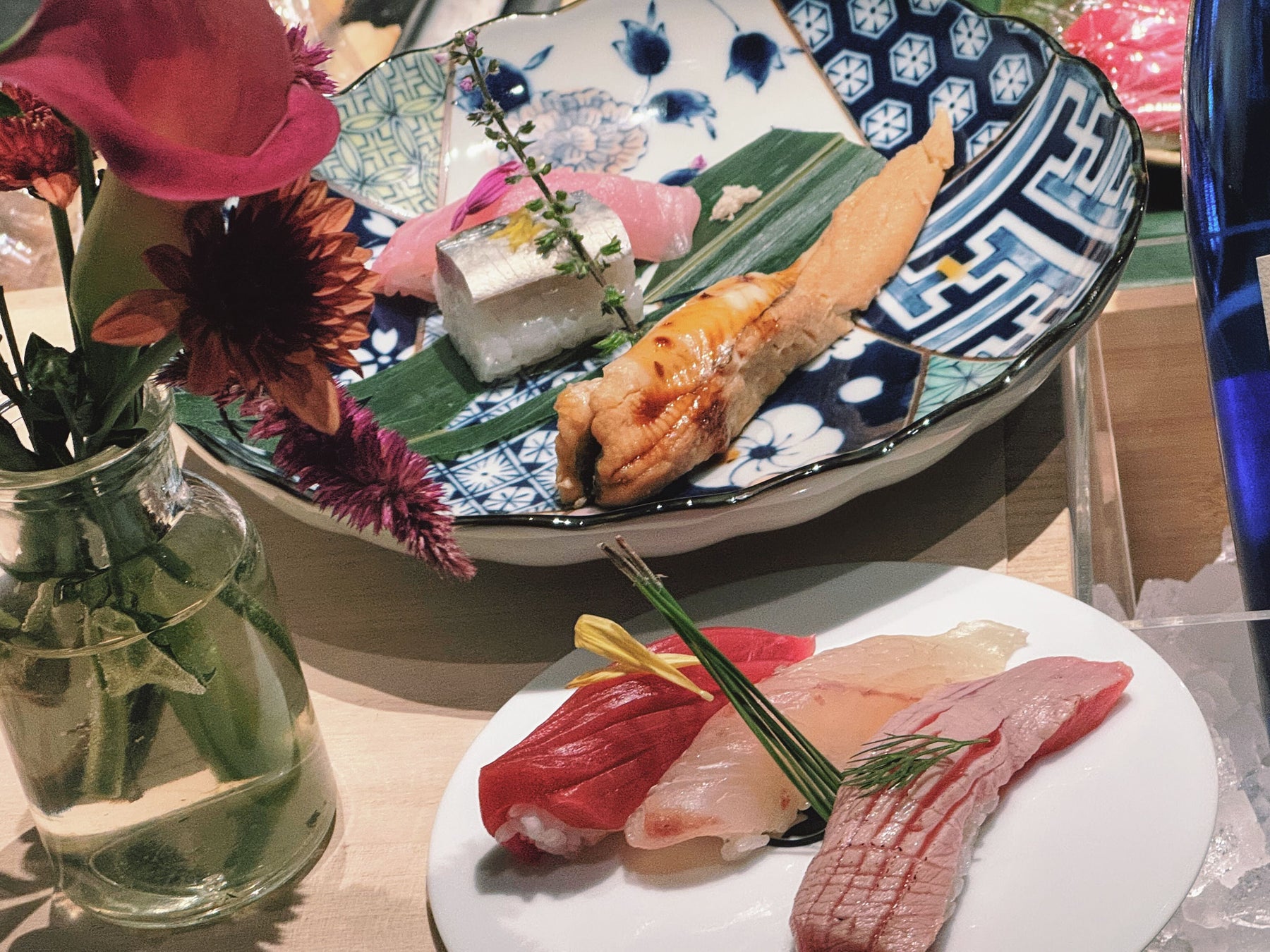 内容:スタンディング形式/にぎり寿司実演/福光屋の日本酒など好きなものを頼んで頂くスタイル/秋の装花演出