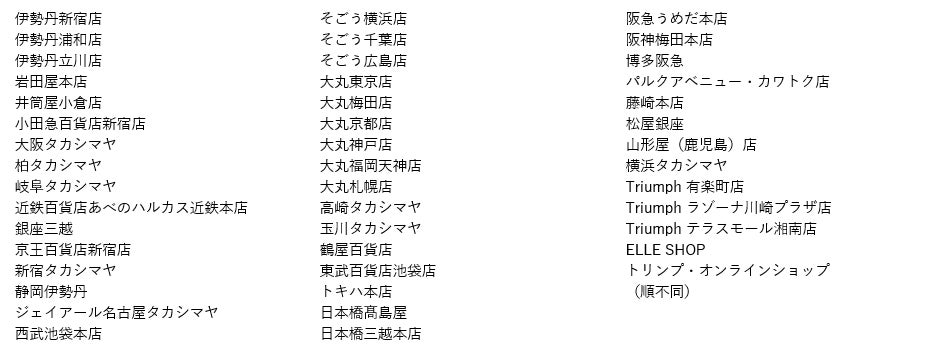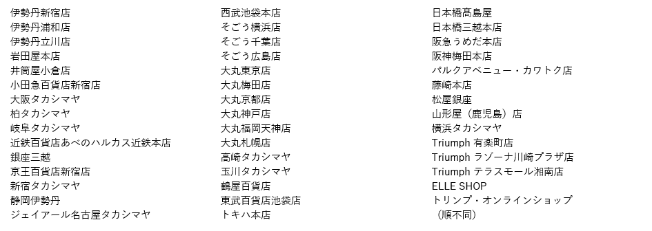 - 【S by Sloggi 販売店一覧】※店舗により、販売アイテム・発売時期が異なる場合がございます。