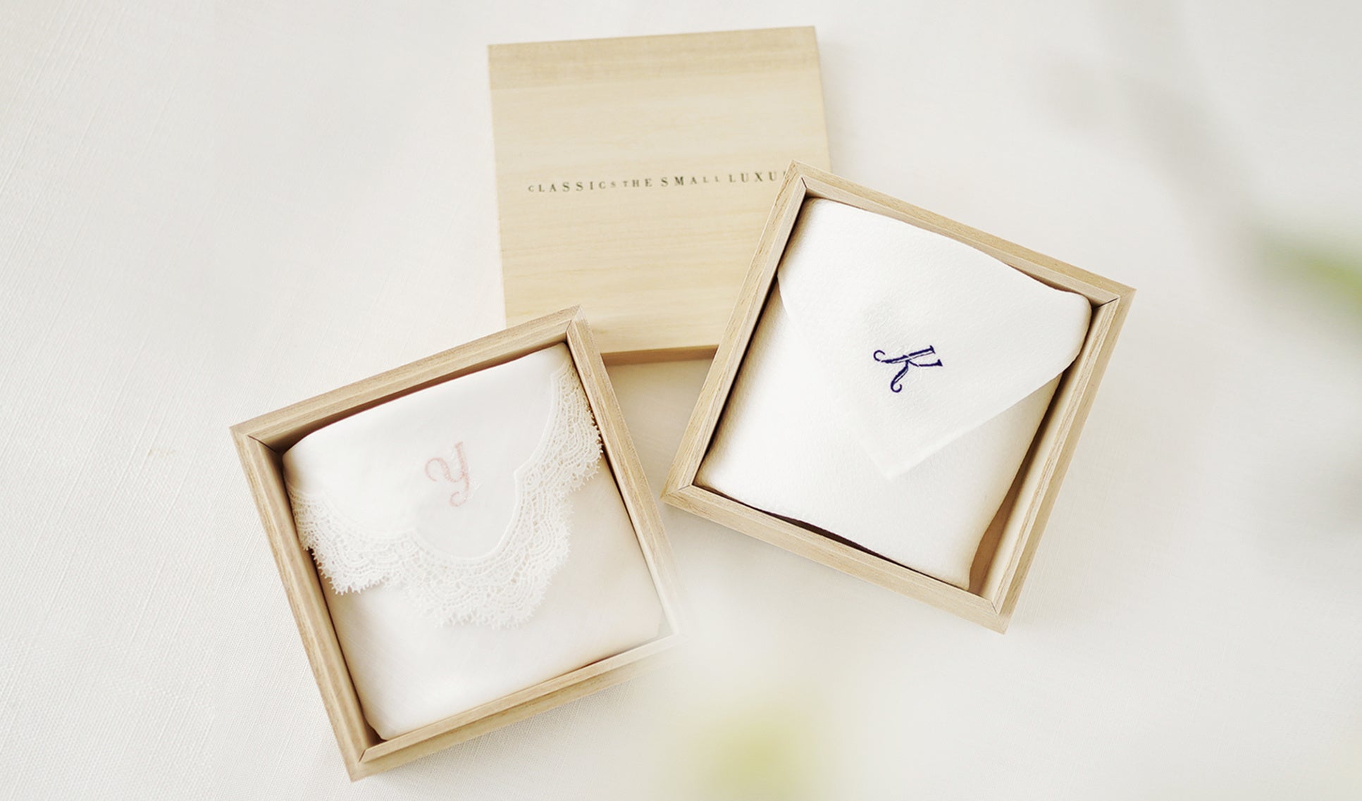 ハンカチは、小さな布にすぎない。けれど、そこに様々な思いをこめることができます。シーズンごとに変化する趣向を凝らしたデザイン。良質な素材。美しい意匠。企画、デザイン、生産、刺繍加工、接客、包装に至るまで。“格別の、ひそやかな贅沢“を誰かの日々にお届けすることを願い、クラシクス・ザ・スモールラグジュアリは生まれました。私たちは、ハンカチを扱うスペシャリティストアです。いち枚のハンカチにこめたたくさんの愛を、世界中へ。