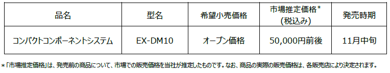コンパクトコンポーネントシステム「EX‐DM10」を発売