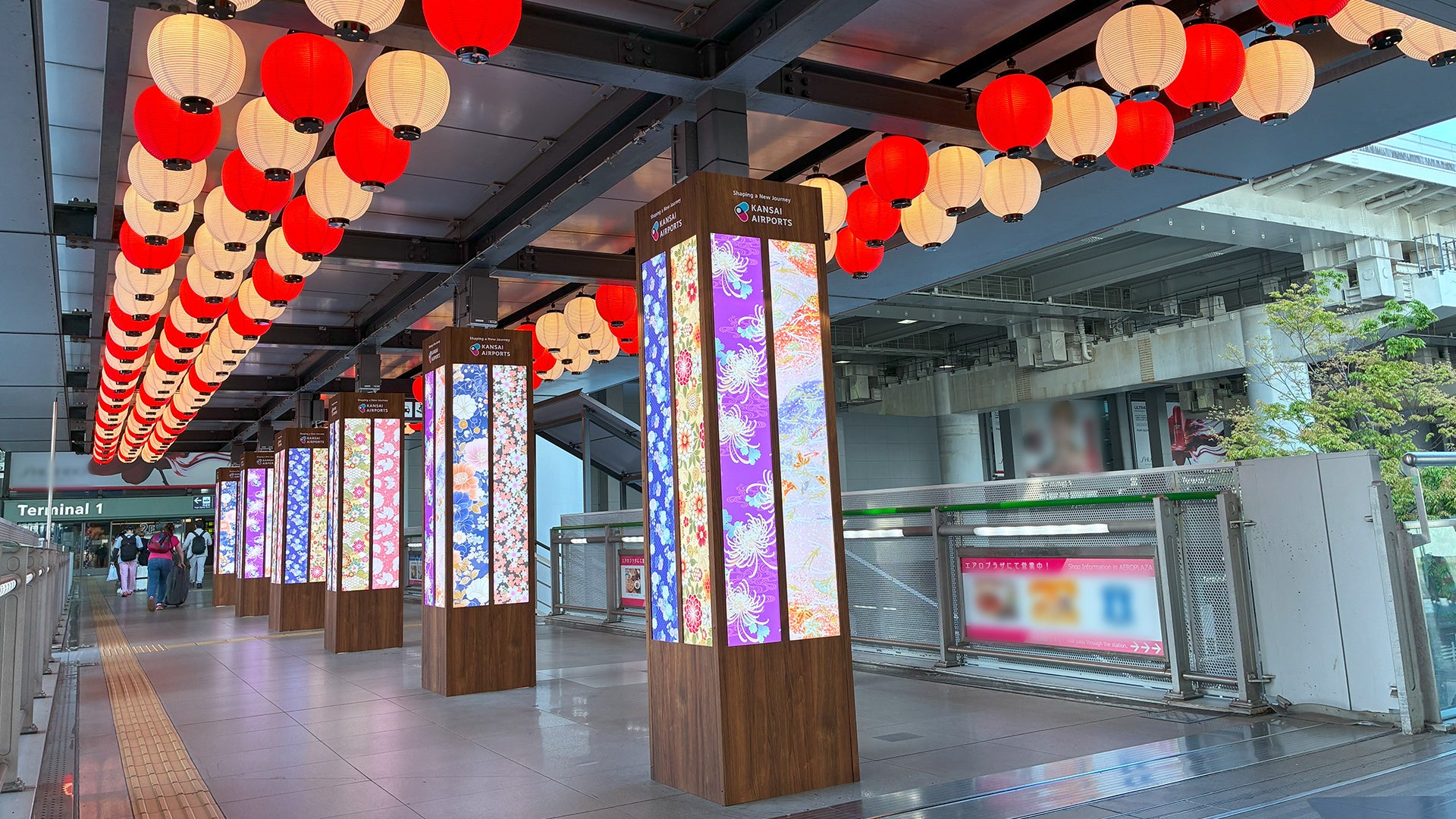 空港を訪れるお客さまを温かく迎え、送り出すための“Welcome演出”としてターミナルビル内の通路や出入口などに展開しています。装飾は季節ごとに表情を変え、関西・日本の文化や風景を感じられる演出を行っています。