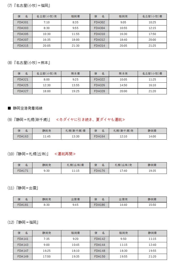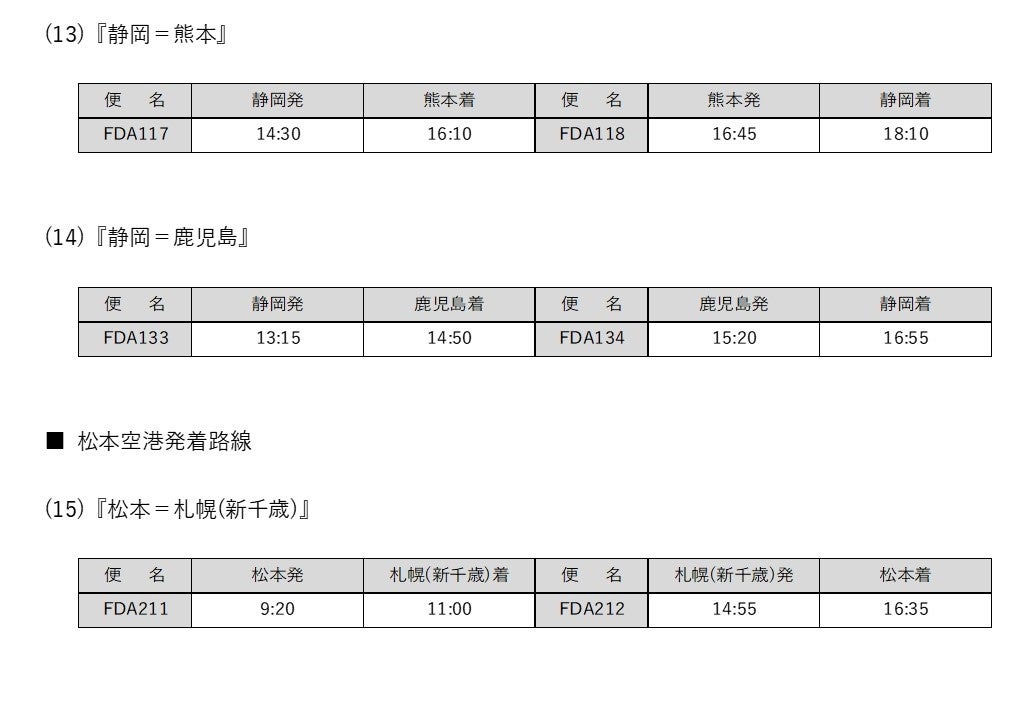 - 『静岡=札幌(丘珠)』線の運航再開について