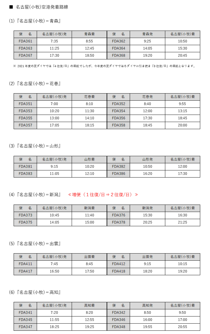 - 『名古屋(小牧)=新潟』線の増便について