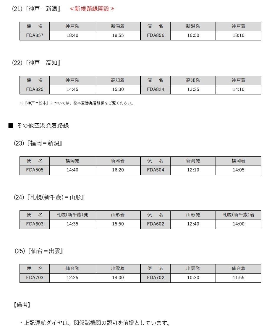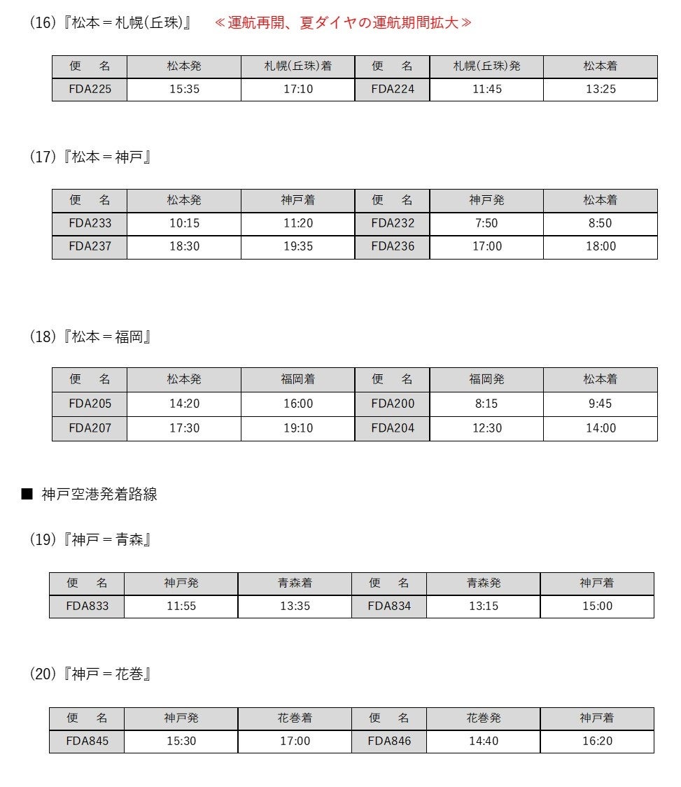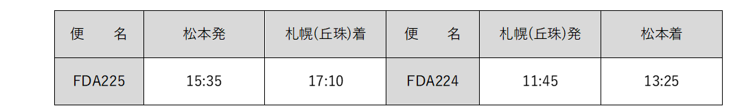 - 『松本=札幌(丘珠)』線の運航再開および運航期間の拡大について