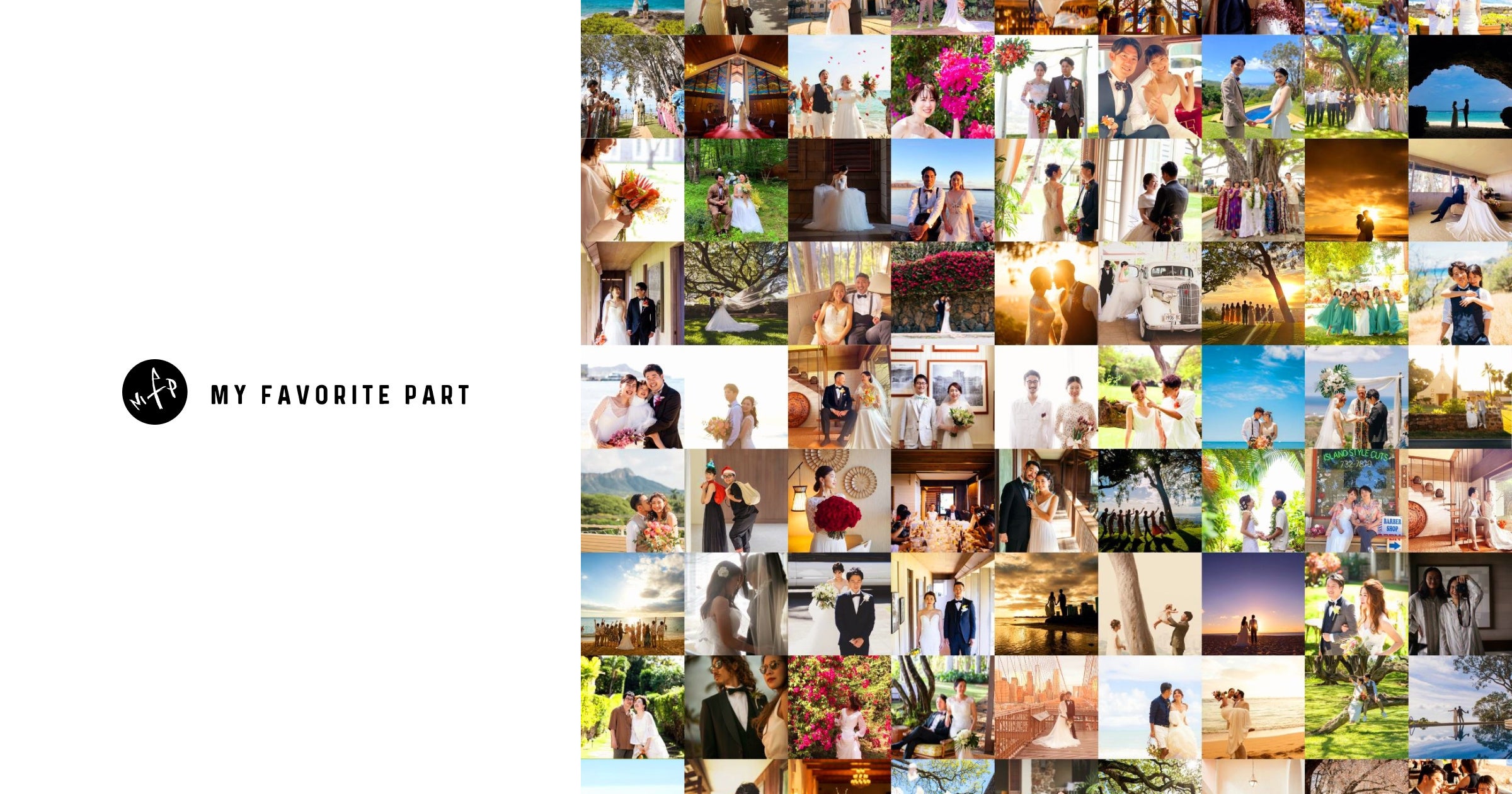 ハワイを軸に、ニューヨーク等の海外挙式や、沖縄・軽井沢等の国内リゾート挙式をプロデュース。<本当にやりたい結婚式><結婚式は楽しい>というのが「マイフェイバリットパート」が提案する結婚式です。決められたパックプランではなく、自由な視点で、カップルとプランナーが一緒になって作り上げる「コンセプトウエディング」。その土地や文化を感じることができる式場で、1組様ずつ気持ちを込めて、全力でプロデュースします。