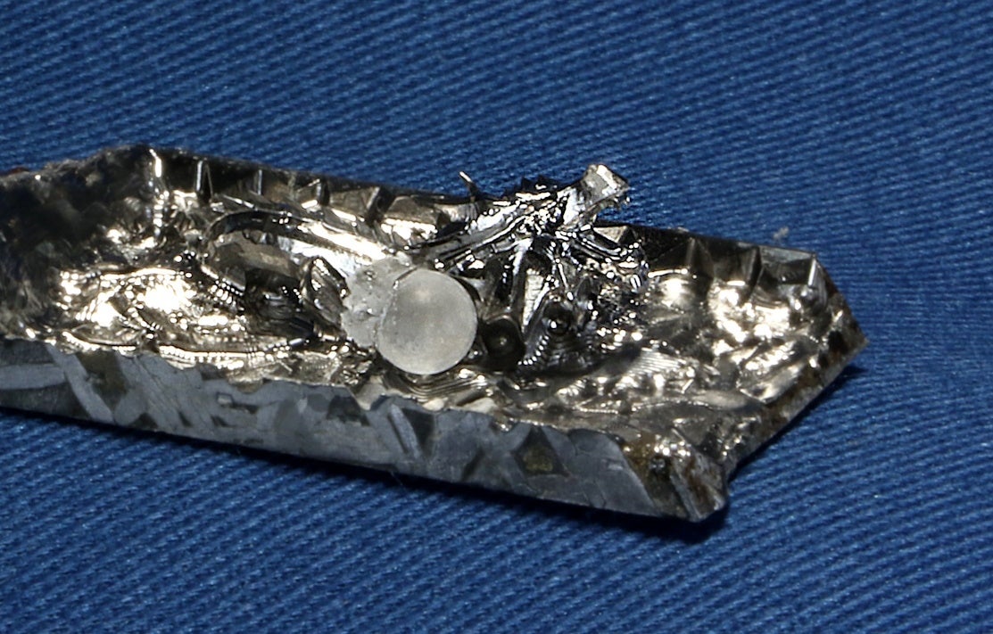 ジェットエンジンを製造する機械を活用し、不可能と言われていた隕石切削加工に成功。田上町のふるさと納税返礼品に。