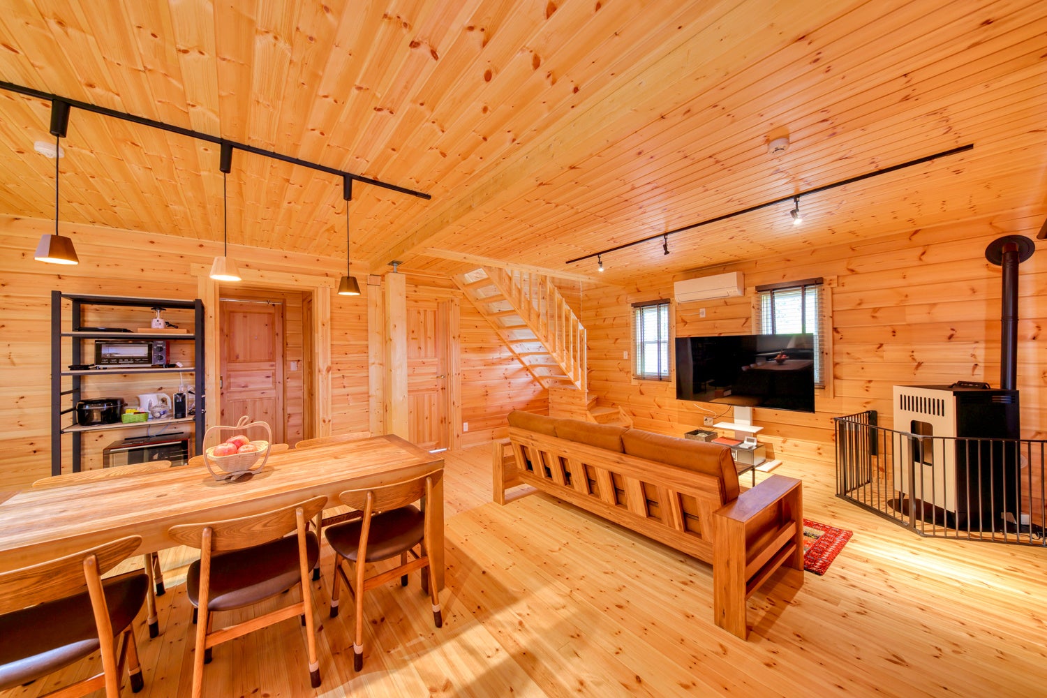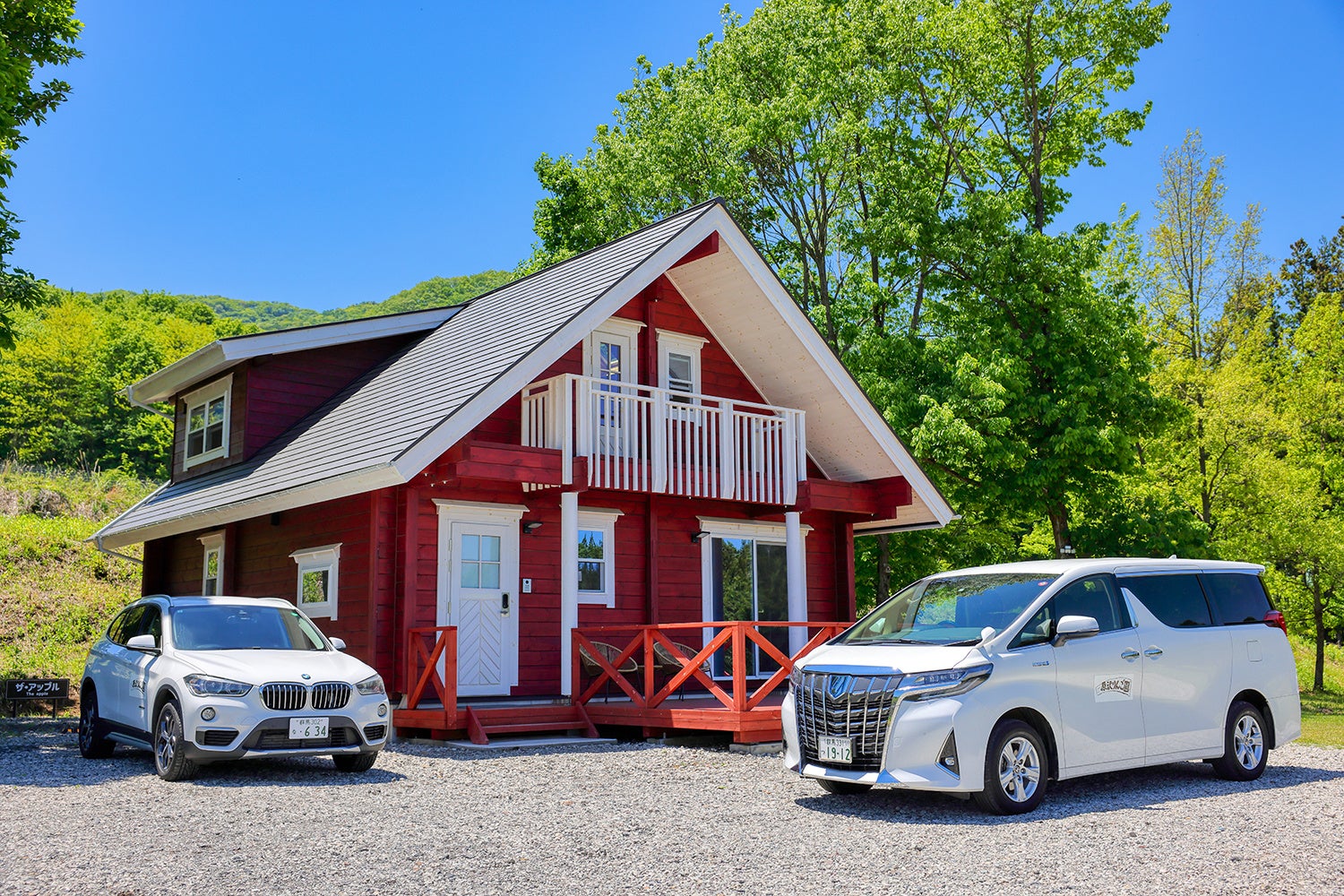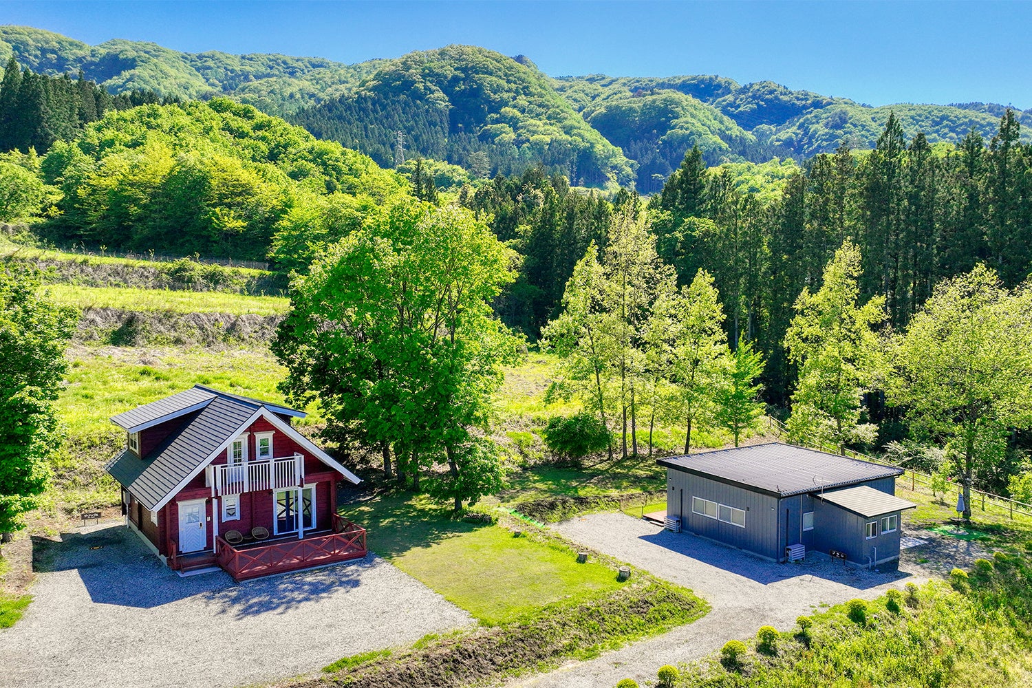 1棟貸切の客室は30,000㎡もの広大なりんご園の中に2棟のみ。