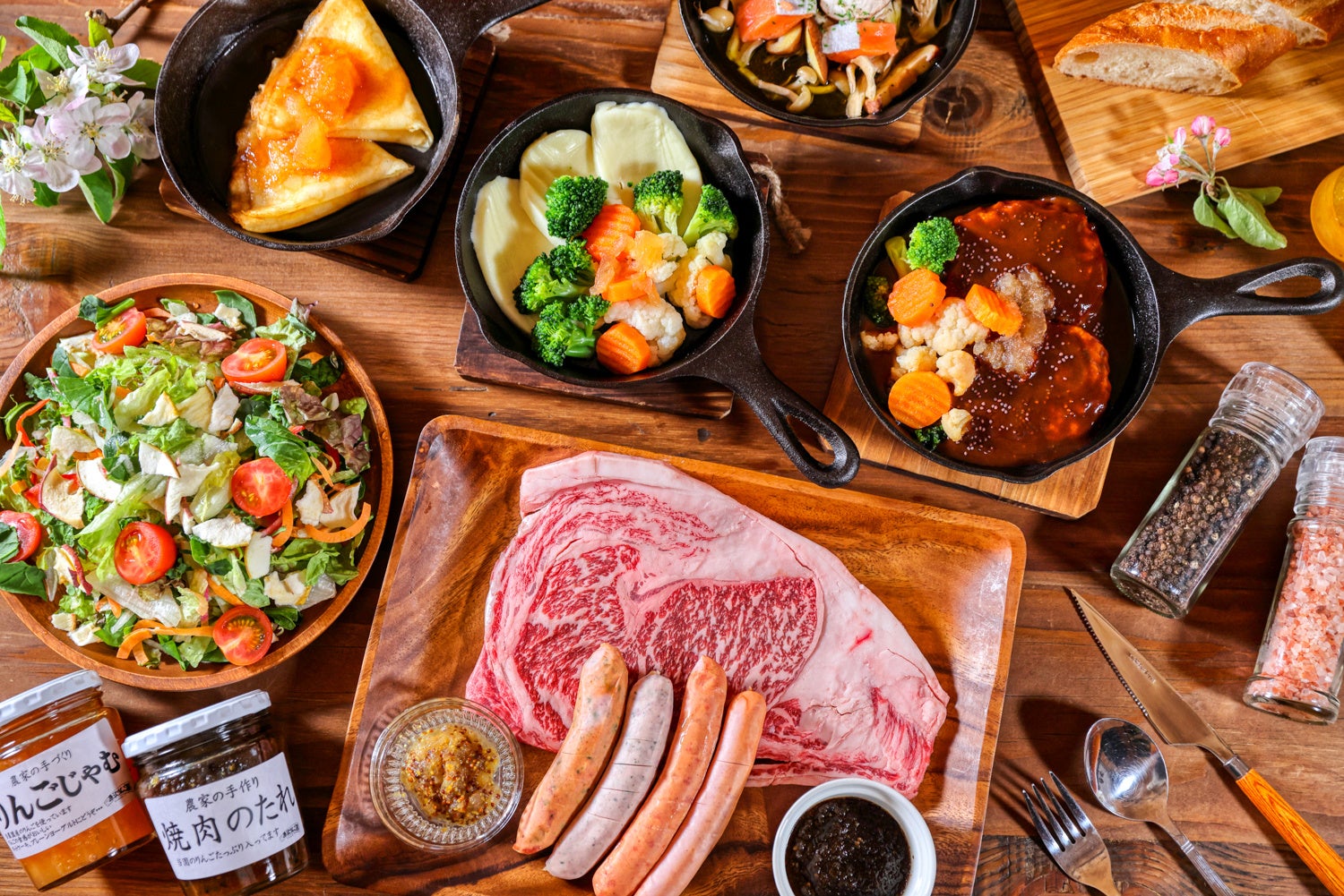 開業より人気のりんご尽くしBBQ。群馬のブランド牛「上州牛」やご当地ウインナーをメインとしたグランピングBBQと新プランのしゃぶしゃぶメニューをご選択頂けます。