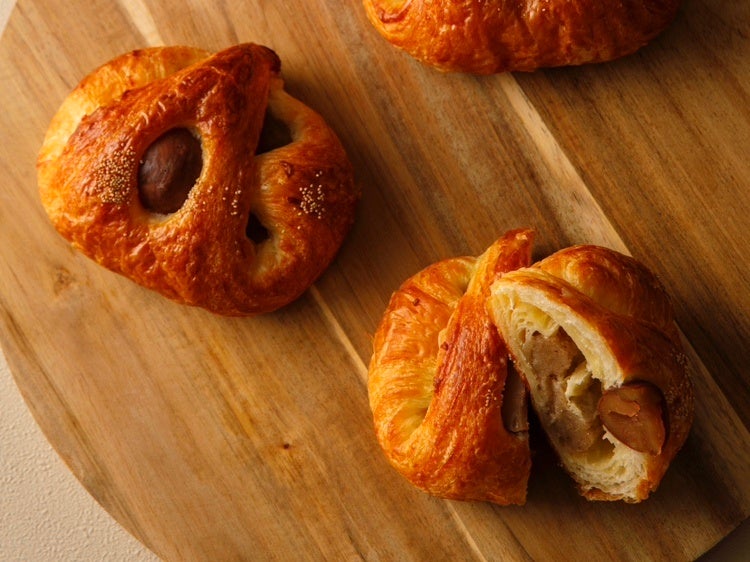 バターの風味が香るデニッシュ生地に、渋皮栗の餡と甘露煮を包みました。