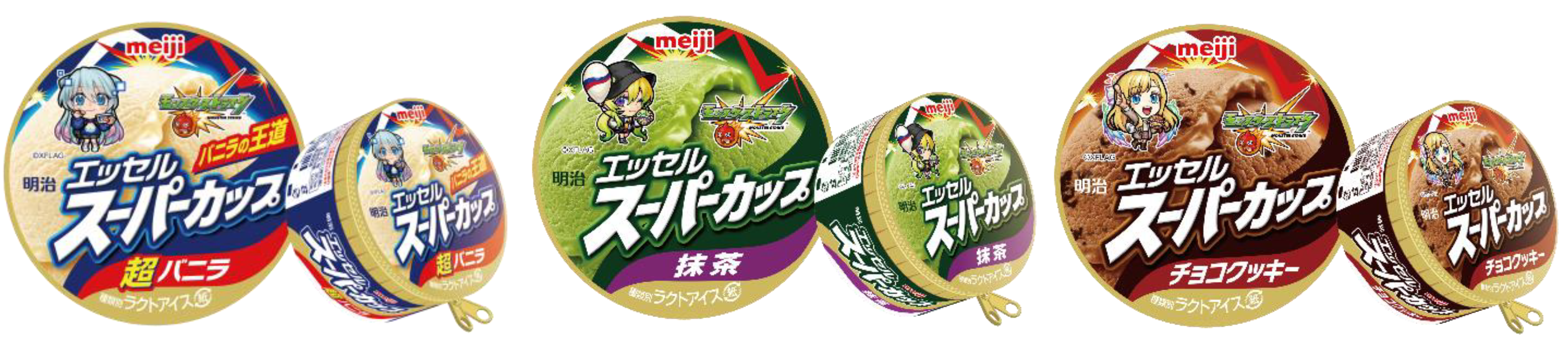 - 遊園地をテーマにした『明治 エッセル スーパーカップ×モンスターストライク』のデザインを使用した限定プライズが登場!