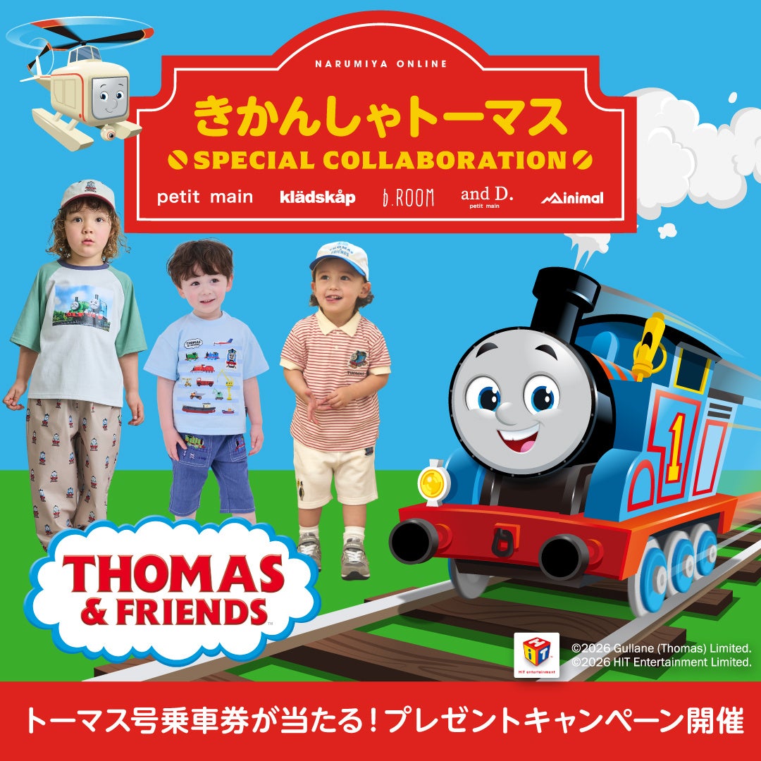 株式会社ナルミヤ・インターナショナル(本社:東京都港区、代表取締役社長執行役員:保坂 大輔)が展開する子ども服ブランド「petit main(プティマイン)」「and D. petit main(アンドディー.プティマイン)」「kladskap(クレードスコープ)」「b.ROOM(ビールーム)」「minimal(ミニマル)」は、「きかんしゃトーマス」とのスペシャルコラボレーションアイテムを、2026年3月13日(金)より発売いたします。