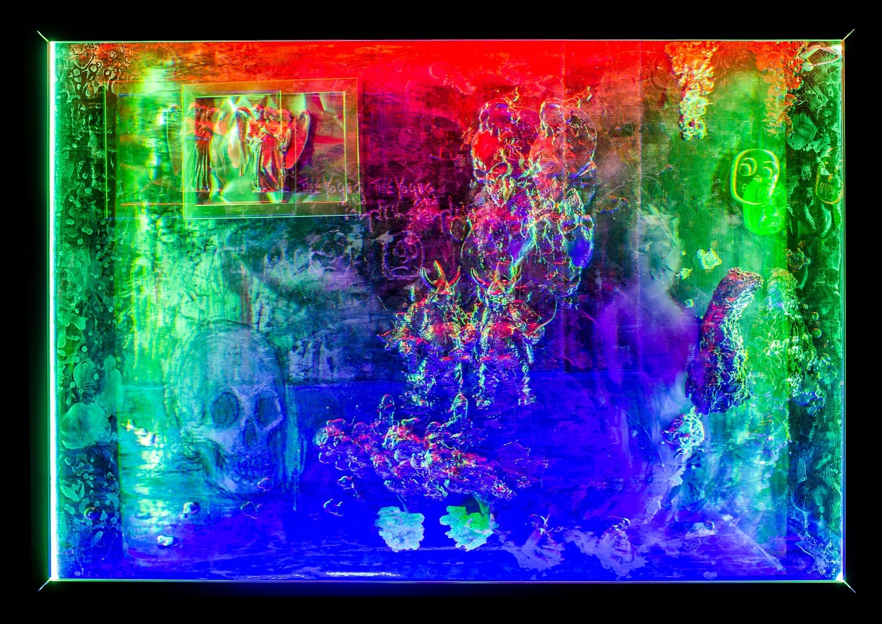 新たなはじまりと題された今回の個展では、光の三原色を用いたライトを仕込み、鑑賞する角度によって様々に変容するレリーフ《If it is there》シリーズを中心に発表。鑑賞者によって変わっていく価値や本質とはなにかを問いかける作品として、新作約40点を展観いたします。