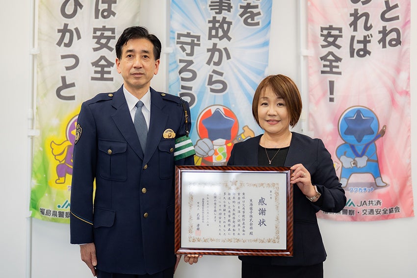 アルコール検知システム、点呼システム、運行管理システム、安全運転管理システムを開発・販売する東海電子株式会社(本社:静岡県富士市 代表取締役:杉本哲也)は、飲酒運転根絶および交通事故防止に向けた継続的な啓発活動が評価され、2025年12月25日、福島県警察本部より感謝状を拝受しました。