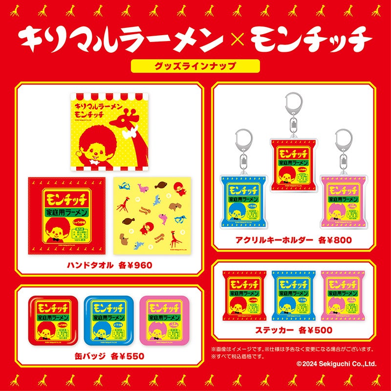 2024年に50周年を迎えたモンチッチとキリマルラーメン、オリエンタルカレー、つけてみそかけてみそ、3社とのコラボです♪