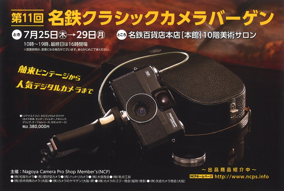 2024年7月25日(木)〜29日(月)、名鉄百貨店本店(本館)10階美術サロンにて、中古カメラ販売イベント「第11回 名鉄クラシックカメラバーゲン」が開催され、焦点工房も出店いたします。