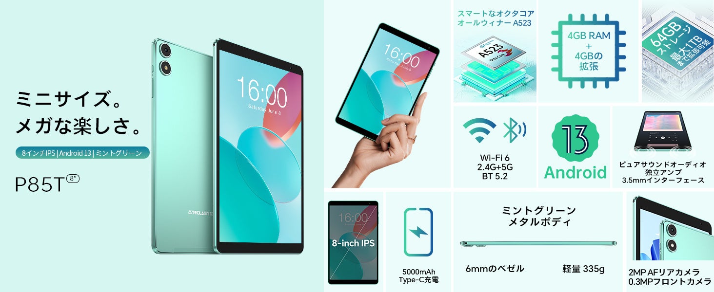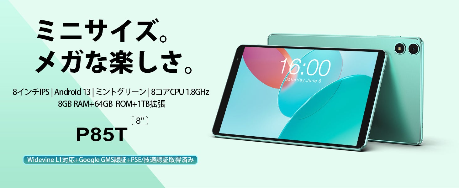 【新品発売¥8,900】Teclast新世代8インチタブレット「P85T」はAmazonで登場!小型のサイズで、フル機能を楽しめます。Android 13/Widevine L1対応/8GB+64GB