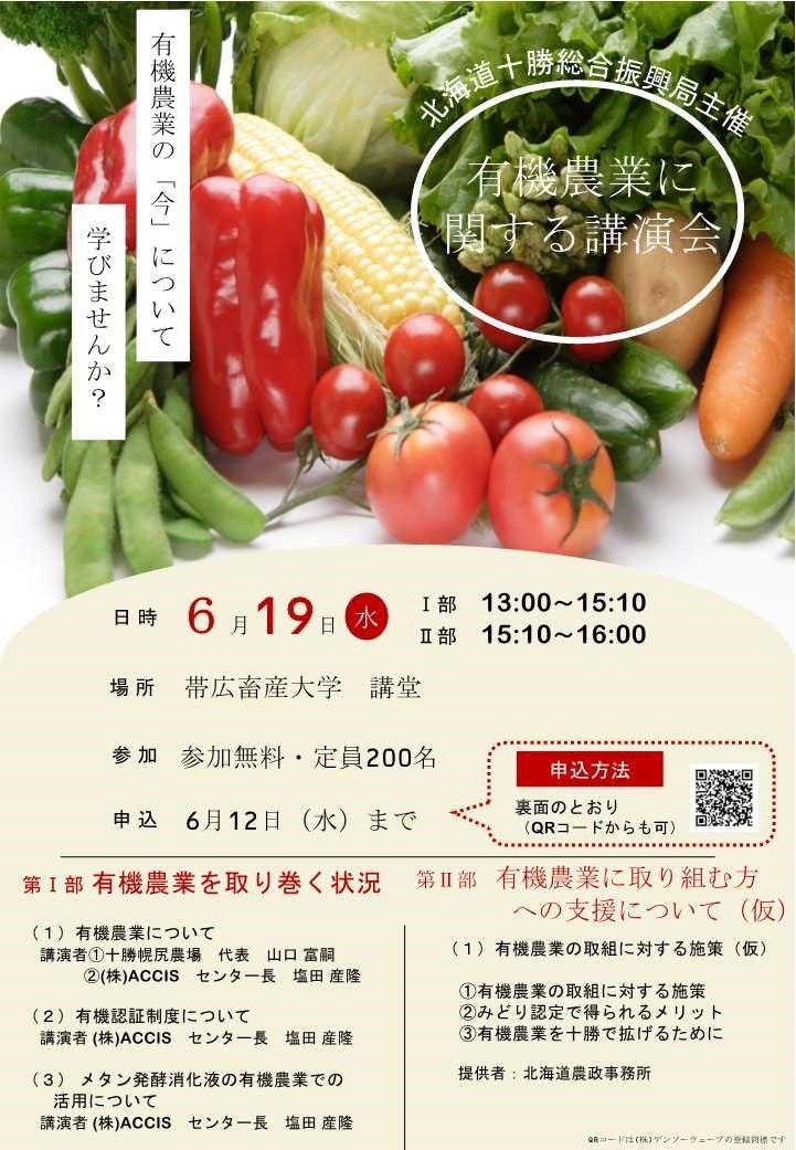 有機農業生産者や関心のある農業者を対象に、有機農業の現状や有機認証に関する情報などの共有を図り、十勝管内の有機農業の拡大を図るとともに、有機農業への参入・転換を促進するため有機農業に関する講演会を開催します。