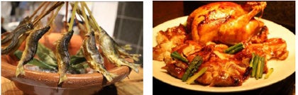 ◆焼き立てステーキ ◆揚げたて天婦羅 ◆鮎の踊り串焼き