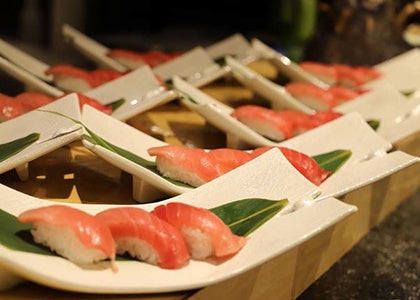 素材にこだわった夏季限定のディナービュッフェ。贅沢食材を 使用したメインのお料理をはじめ、約50種類の豊富なメニュー をご用意。前菜からデザートまで揃う数々のお料理の中から、 自分だけのフルコースをお楽しみいただけます。またビュッフェメニューとは別に、シェフからの逸品「松阪牛のすき焼き」 「本まぐろの握り寿司」をプレゼント。天悠ディナービュッフェで思い出に残る夏のひとときをお過ごしください。