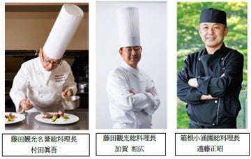 まず、天悠開業6周年記念企画として、藤田観光名誉総料理長・村田 眞吾、藤田観光総料理長・加賀 和広、箱根小涌園総料理長・遠藤 正昭がタッグを組んで創り上げる特別会席では、各々の料理長が得意とするフランス料理と和食のエッセンスを融合させた伝統と革新のお料理の数々をご堪能いただけます。
