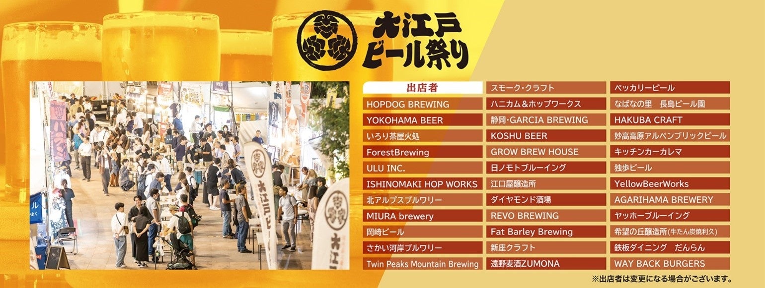 9月19日(木)~29日(日)には、日本各地の大人気クラフトビールが一堂に集まる大江戸ビール祭りを開催します。醸造会社やインポーターからのビールの味や特徴などの話を直接聞くことができる貴重な体験が可能です。クラフトビールに馴染みがある方も、これまであまり飲んだことがない方も、多種多様なテイストのビールを飲み比べることができる機会となります。