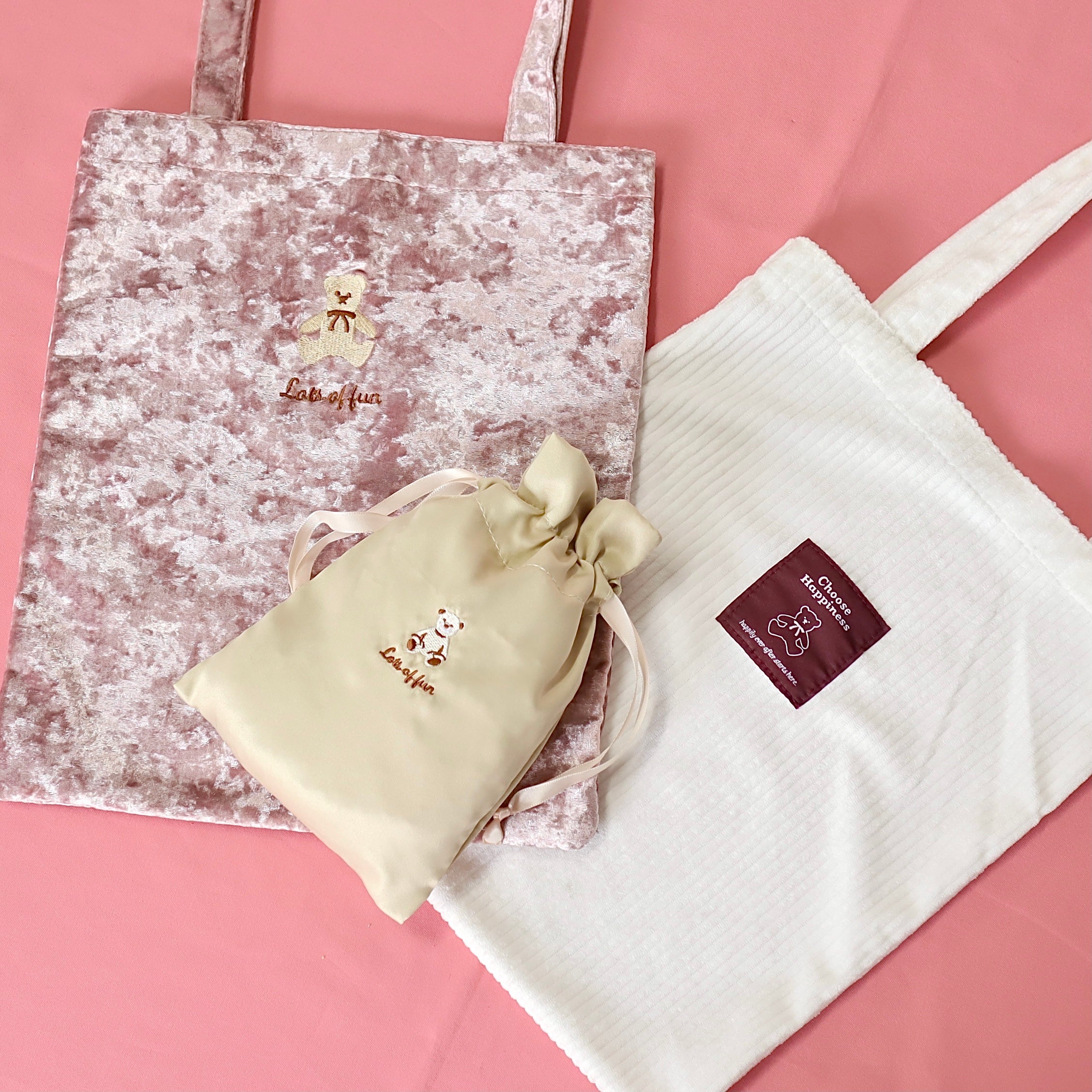 トートバッグはコーデュロイとベロア生地の2パターンで展開するなど素材にもこだわり、390円(税込429円)とは思えない質感とデザインのアイテムです。