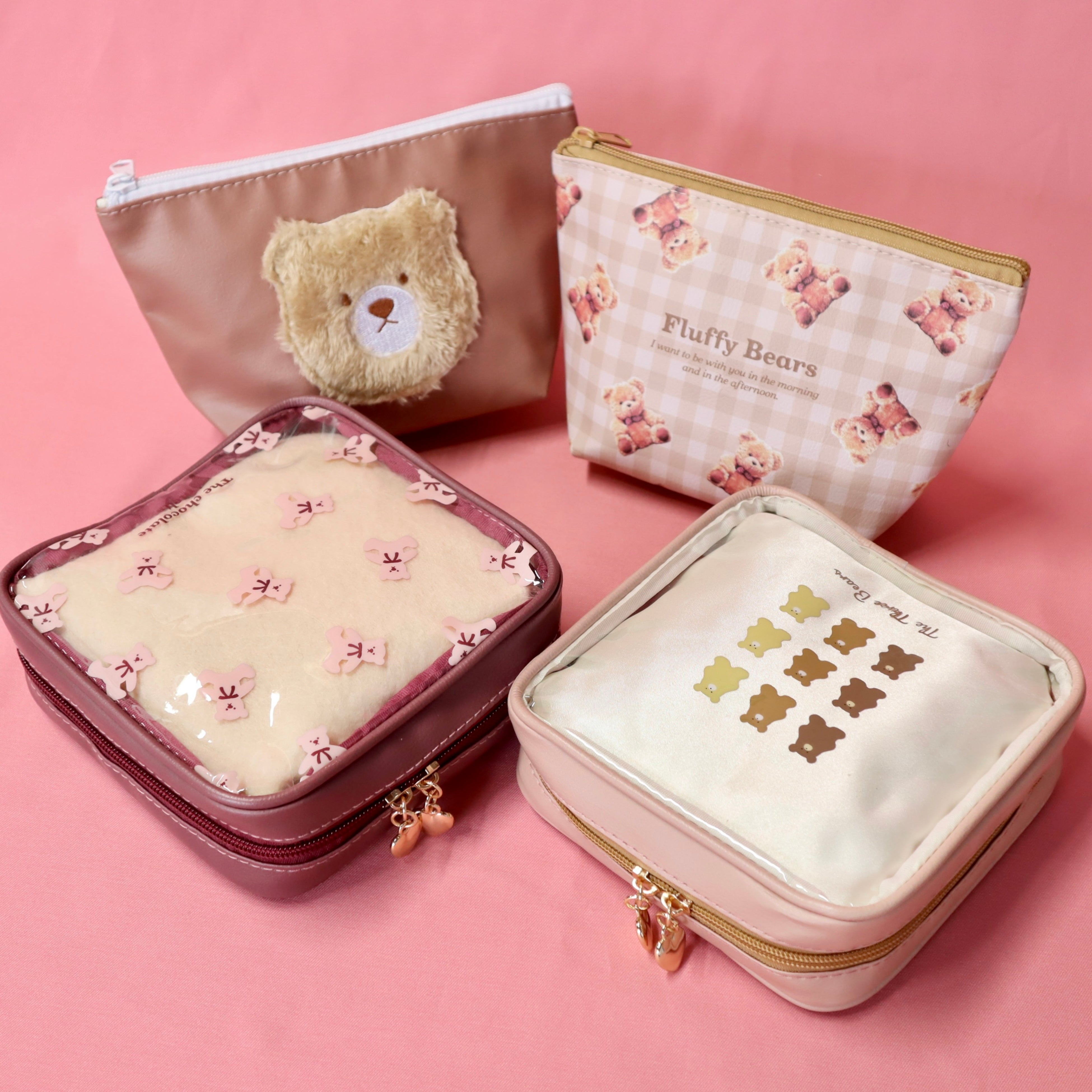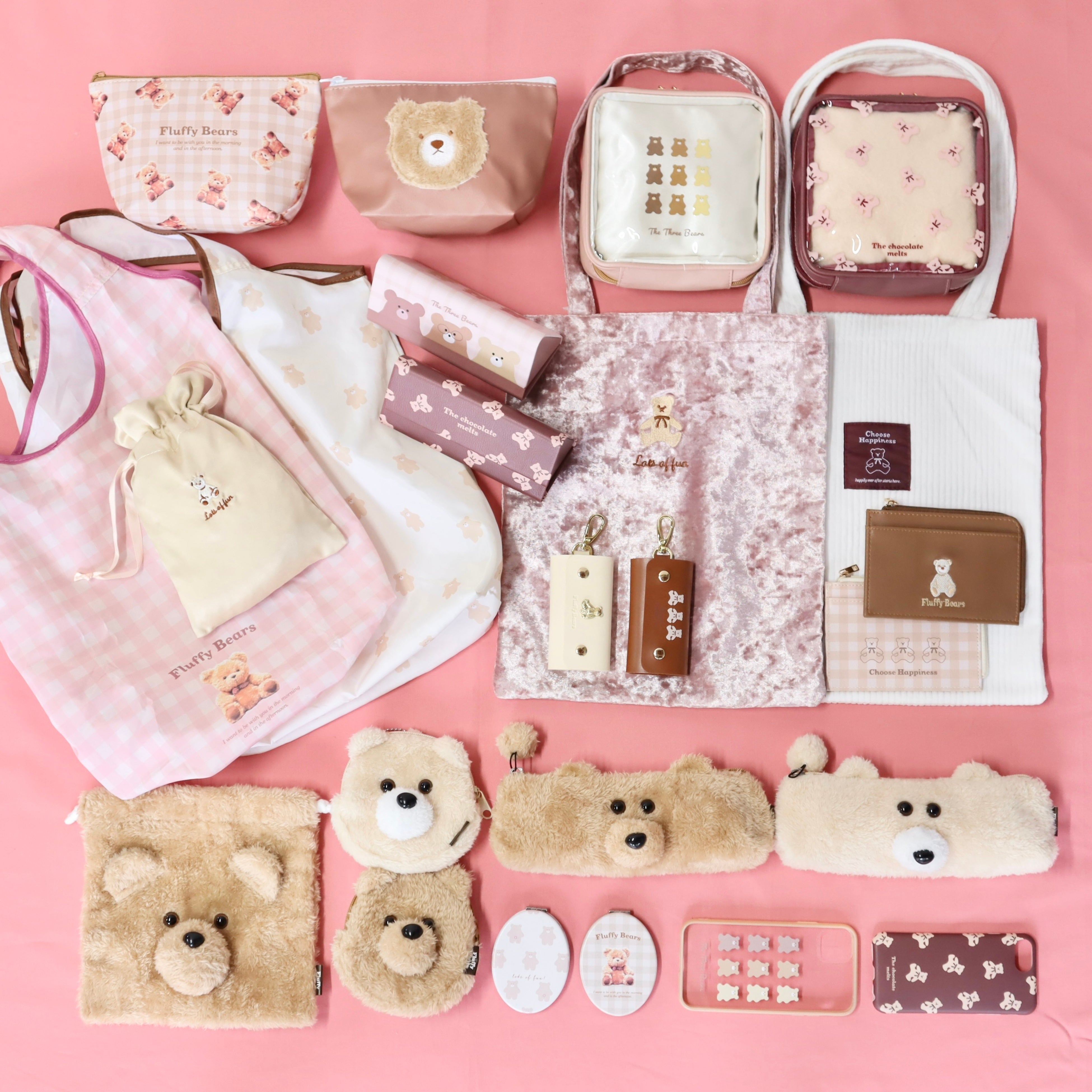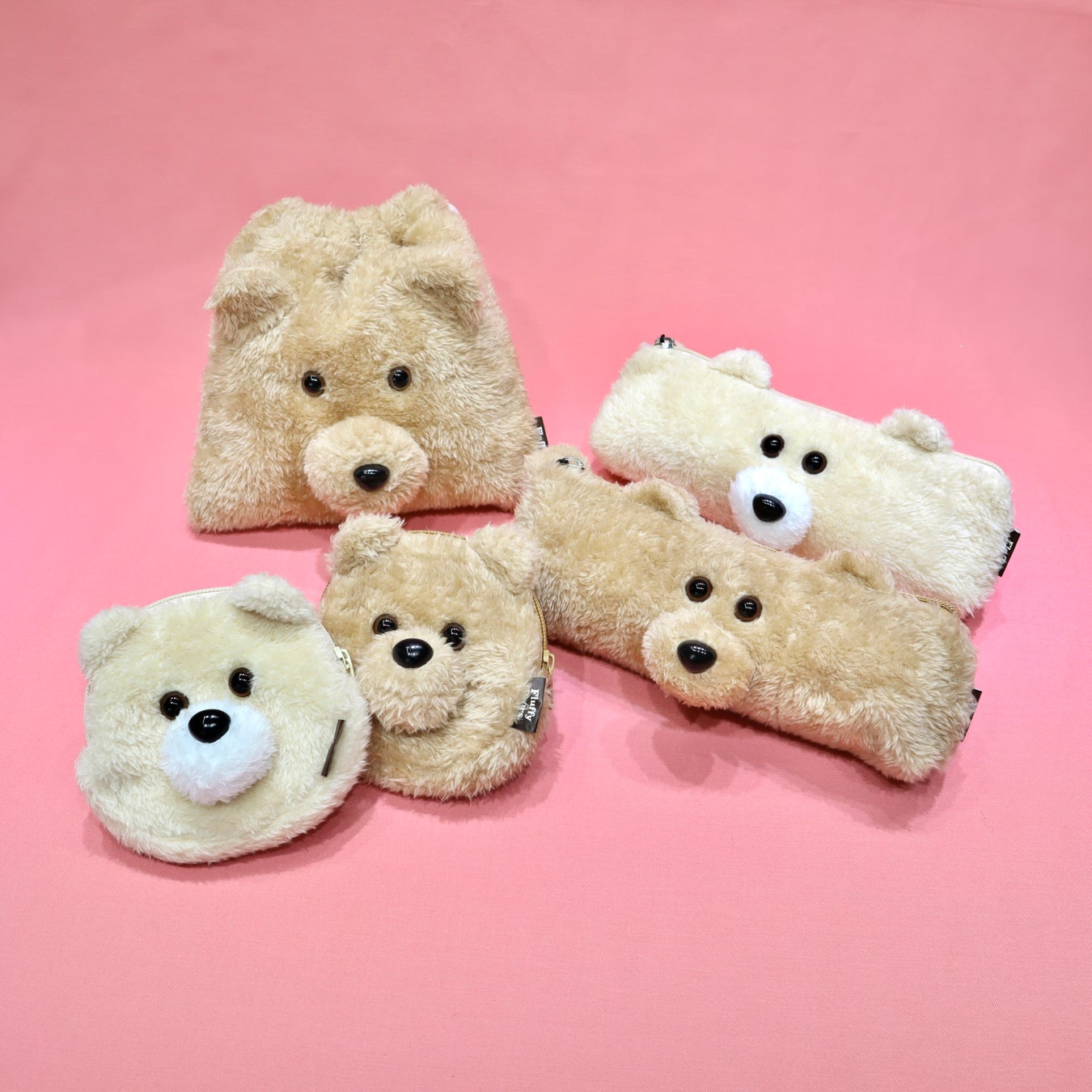 また、台形ポーチやふわふわコインケース、マチ付ペンケースは、ぬいぐるみをイメージしたもこもこ素材のくまさんデザインで、見ているだけで癒されるような愛らしいアイテムに仕上がりました。
