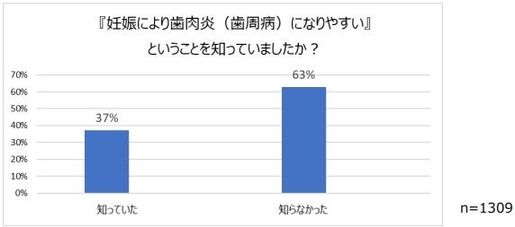 ③「妊娠により歯肉炎(歯周病)になりやすい」ことを知らない方は約6割(63%)と、リスクの認知率はまだ低い結果に。