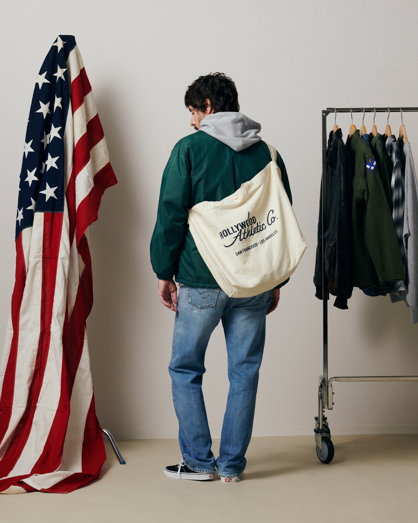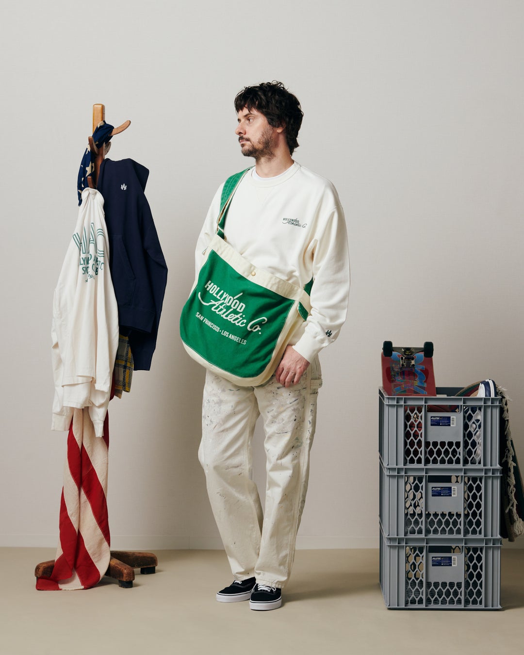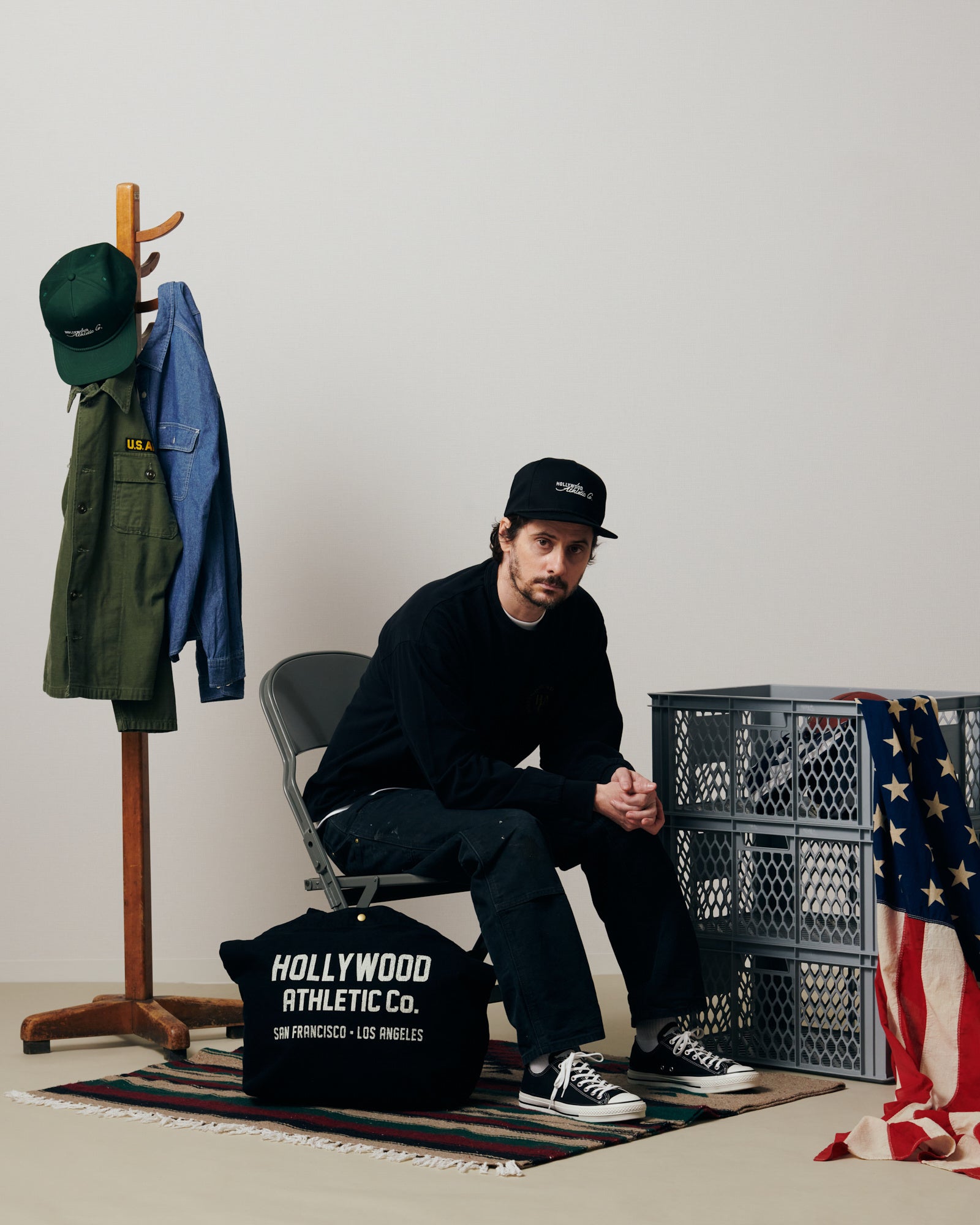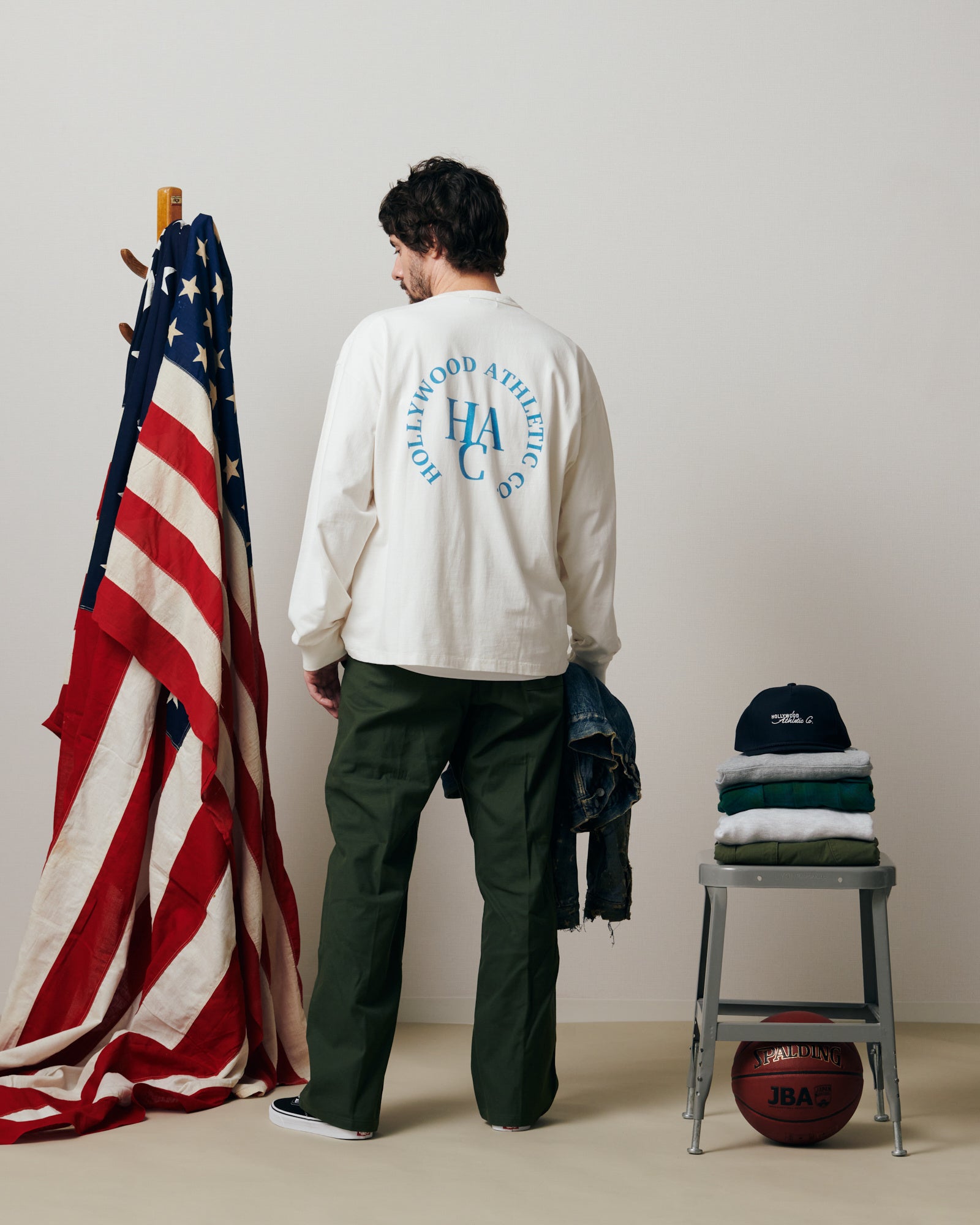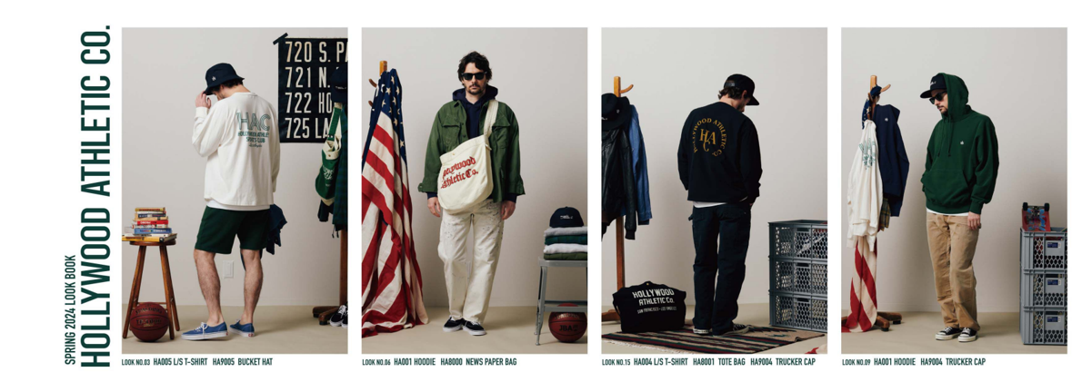 アイテムは、ハリウッド・アスレチックの歴史あるスポーツカジュアルウェアを基軸とし、シルエット・サイジング・素材は、西海岸ヴィンテージスポーツウェアを現代風にアップデートし、デザインとして取り入れました。