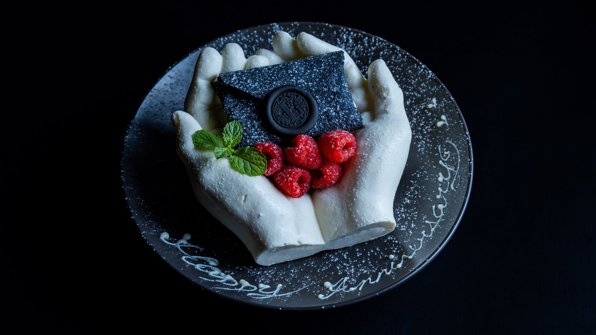 手のひらの形をした酸味と甘みのバランスがとれたレアチーズムースの上には、手紙の形をした竹炭を使用したクレープ。ハロウィン気分を盛り上げるちょっぴりホラーな見た目でありながらも手紙で大切な人に気持ちを伝える温かい気持ちを表現しました。サプライズにぴったりな、会話も弾むこと間違いなしのケーキで特別な記念日をお過ごしください。(ケーキサイズ:4号)