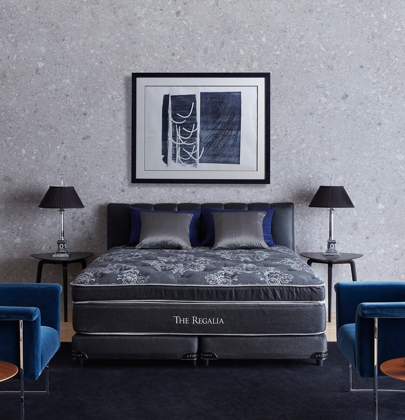 プレミアムマットレスブランド「REGALIA(レガリア)」の最高峰マットレス。最新技術を駆使した4種類の特徴の異なるコイルと、熟練職人による伝統のハンドタフティングにより、耐久性を高めながらも、包み込まれるような極上のフィット感を実現します。