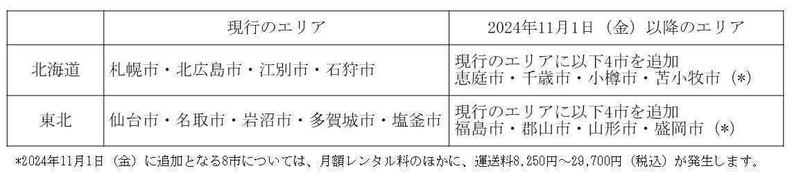 昨今、気軽に導入できるレンタルのニーズの高まりがあることから、このたび対象エリアの追加を行いました。