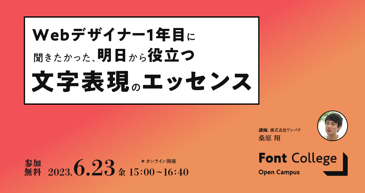 【オンライン開催】Font College Open Campus 8限目 「Webデザイナー1年目に聞きたかった、明日から役立つ文字表現のエッセンス」
