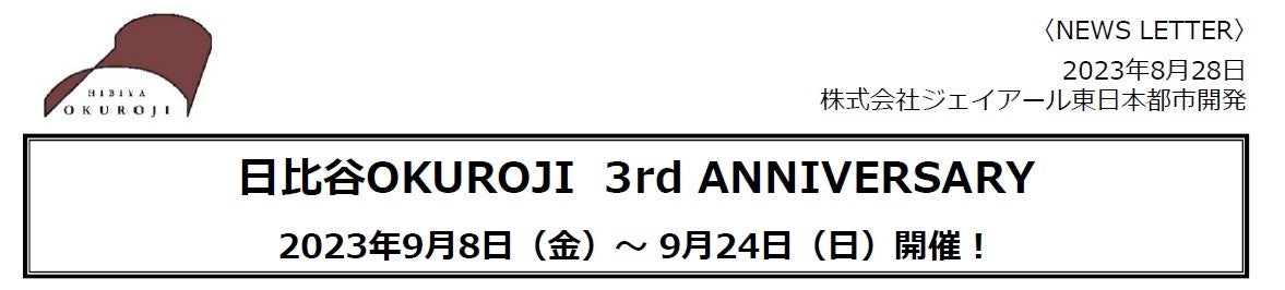 日比谷OKUROJIは、2023年9月10日(日)に開業3周年を迎えます。お客様や地域の皆様に感謝のきもちを込めて、「この街をもっと彩る存在に」をコンセプトに、9月8日(金)~ 9月24日(日)の期間、「日比谷OKUROJI 3rd ANNIVERSARY」を開催します。