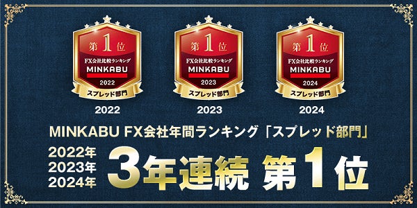 MINKABU(みんかぶ)FX会社年間ランキング「スプレッド部門」で3年連続 第1位を受賞