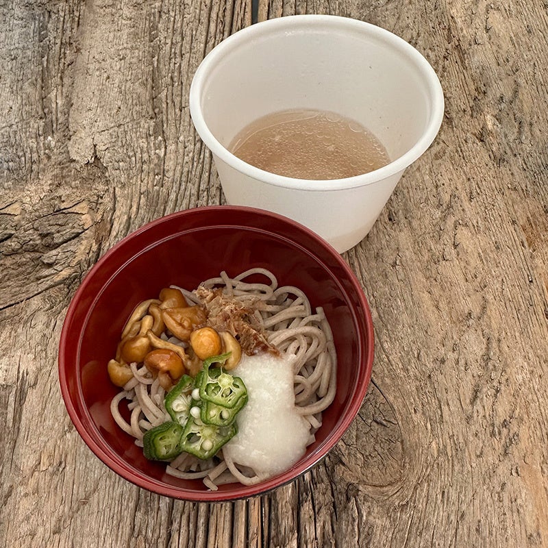 葛粉でとろみをつけた出汁は、鰹節の澄んだ旨味と豚ひき肉の濃厚な味わいが合わさり、味も香りも犬にはたまらない美味しさとなっています。蕎麦は十割蕎麦を使用し、食べやすく短めにカットしてあり、さらに具材にはなめこ、山芋、オクラがトッピングされています。一つ一つ、全て手作業のため、愛犬も家族の一員として、年末の夜を一緒に暖かく美味しく過ごせるようにとの思いが込められています。出汁はレンジアップ可能な容器に入れられ、そばと具材だけが専用のお椀に入って届けられますので、解凍後温めた出汁をお椀に注げばワンちゃんに食べられる程よい温度になるように作られています。