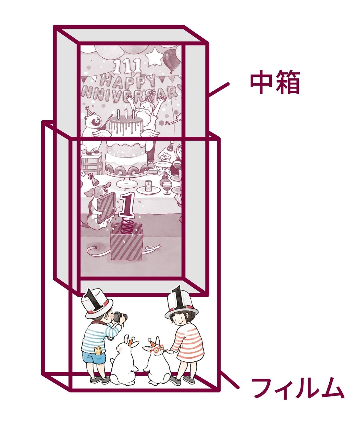 また、12粒ミルクキャラメルで、パッケージのイラストとフィルムを重ね合わせたときに「111」が揃うと、当選確率が2倍になります。