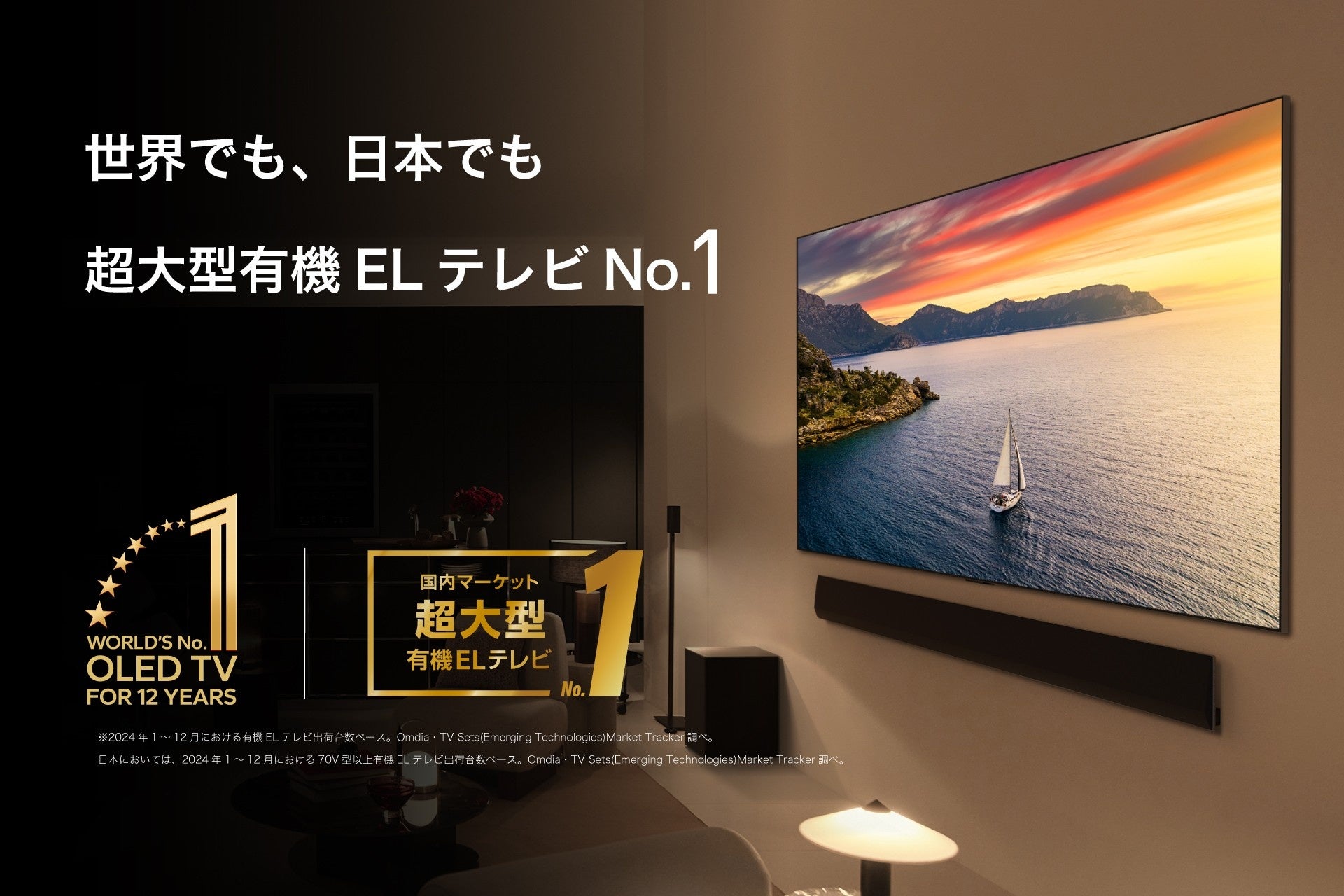 (※1)2024年1~12月における70V型以上有機ELテレビ出荷台数ベース。Omdia・TV Sets(Emerging Technologies)Market Tracker調べ。