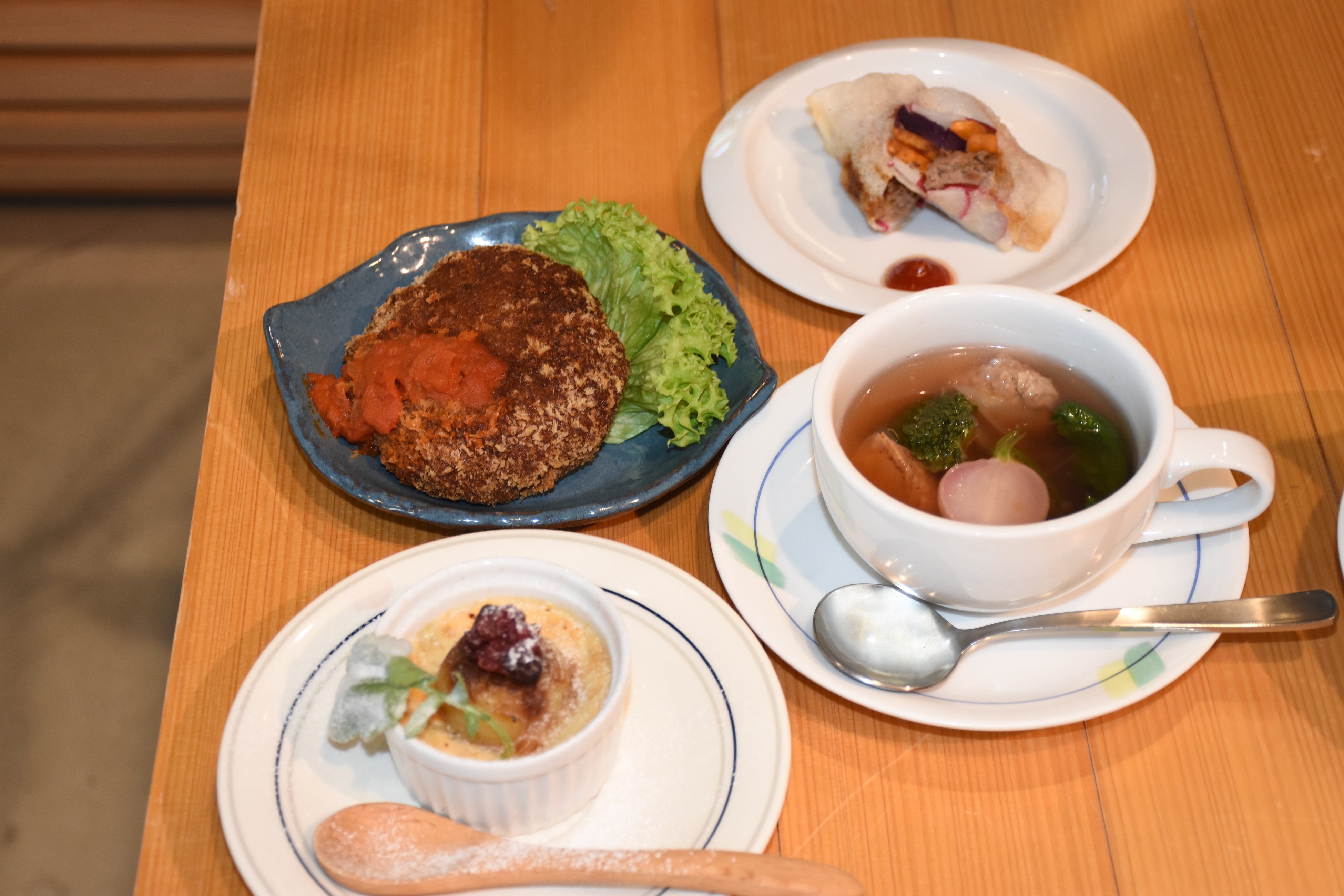 トップバッターは、昨年も参加した洋食店「キッチンイマイ」(中岩田2)。「コラボメンチ&農園ポトフ&柿ブリュレさつまいもとラディッシュを添えて&彩り生春巻き揚げ」(4品コラボセットで1650円)を作りました。ブリュレにも赤ワインで甘く煮たラディッシュがのっており、農家側の「らでぃっしゅ屋」は「スイーツにもラディッシュを使っていただき、どのようなスイーツになるのか不安でしたが、頑張って手をかけていただき、ラディッシュが本当に美味しいスイーツになっていて驚きでした。ぜひ味わって食べてください」と呼びかけました。