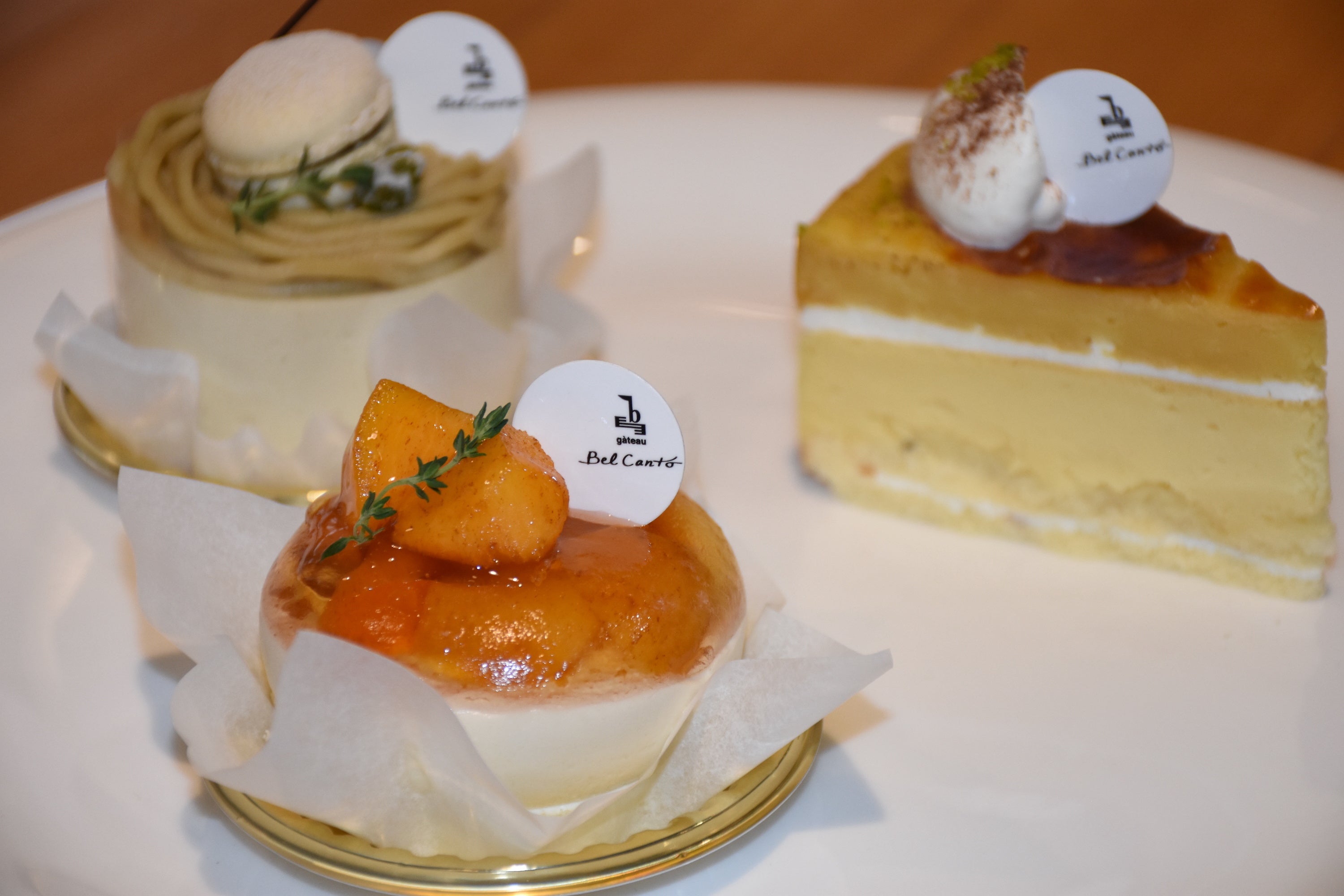 最後は洋菓子店「ベルカント」(西幸町)。「和栗とほうじ茶」(473円)「柿のテリーヌと紅茶のムース」(462円)「紅はるかとにんじん芋のスフレ」(462円)の3種類のケーキを発表しました。次郎柿農家の「百年柿園ベル・ファーム」は、「豊橋の秋といえば柿。このケーキも秋の定番になれば」と期待していました。